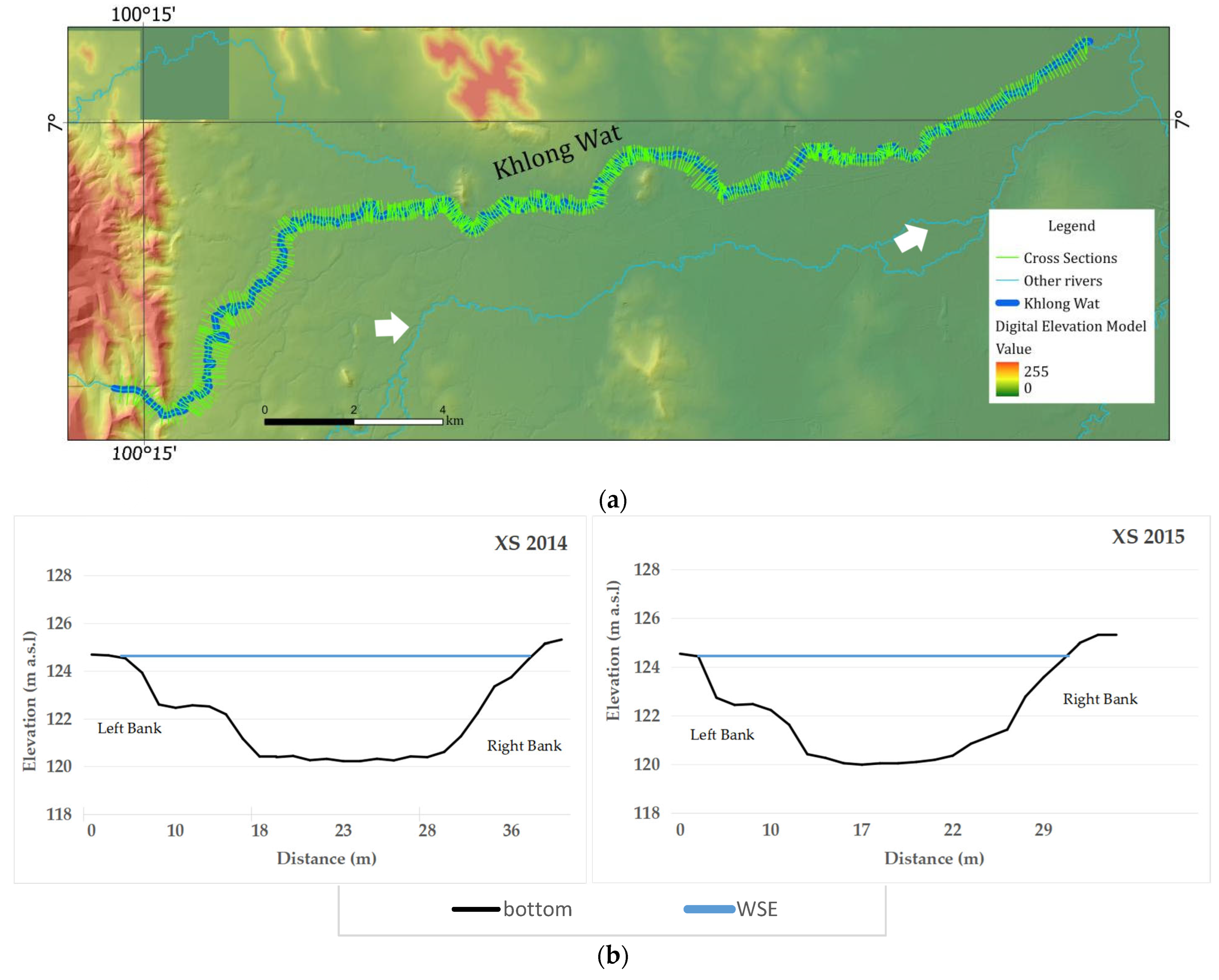 35]. In addition, observed discharge data from Khlong Wat during the same flood event were further incorporated to support model verification [