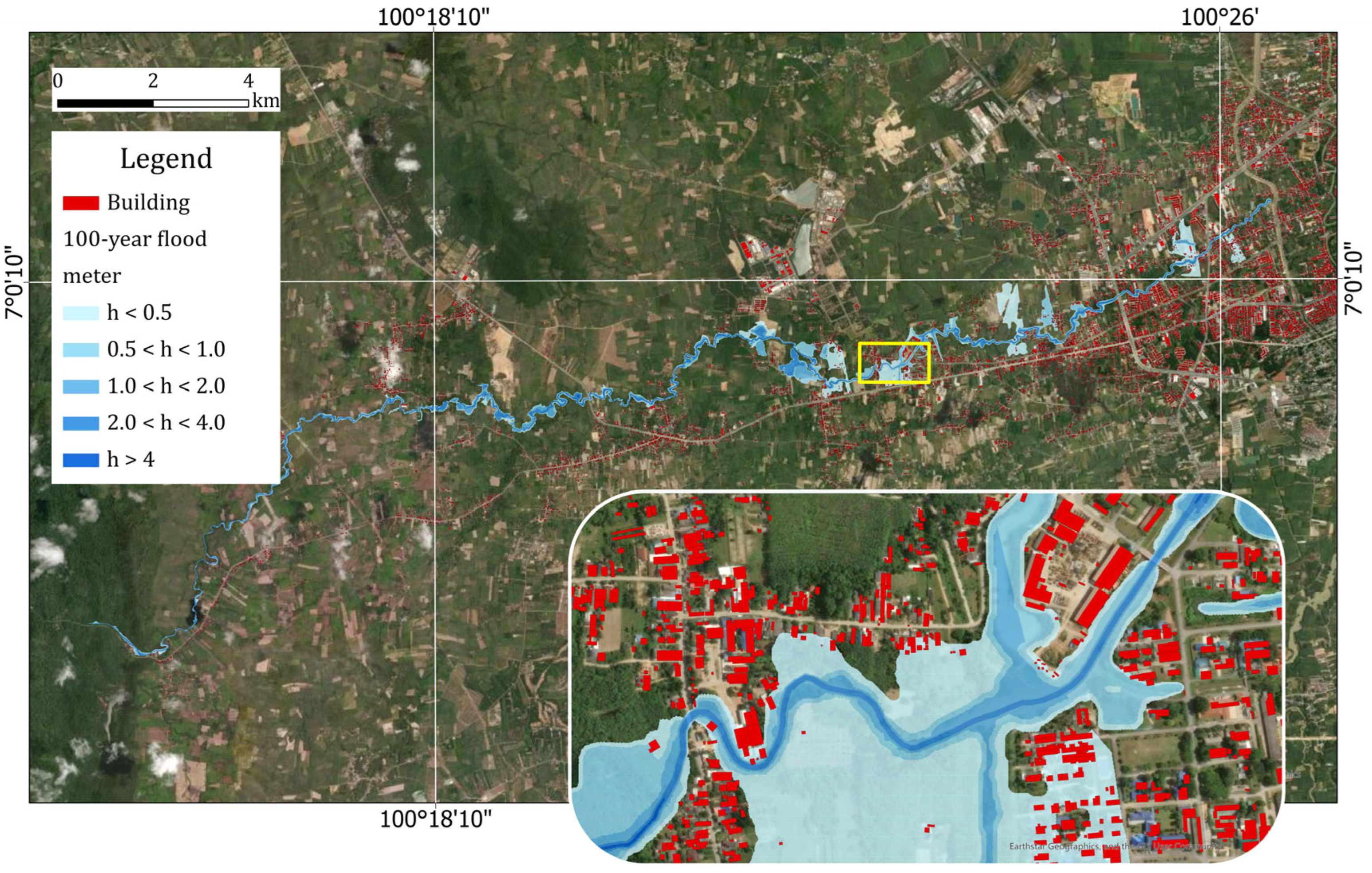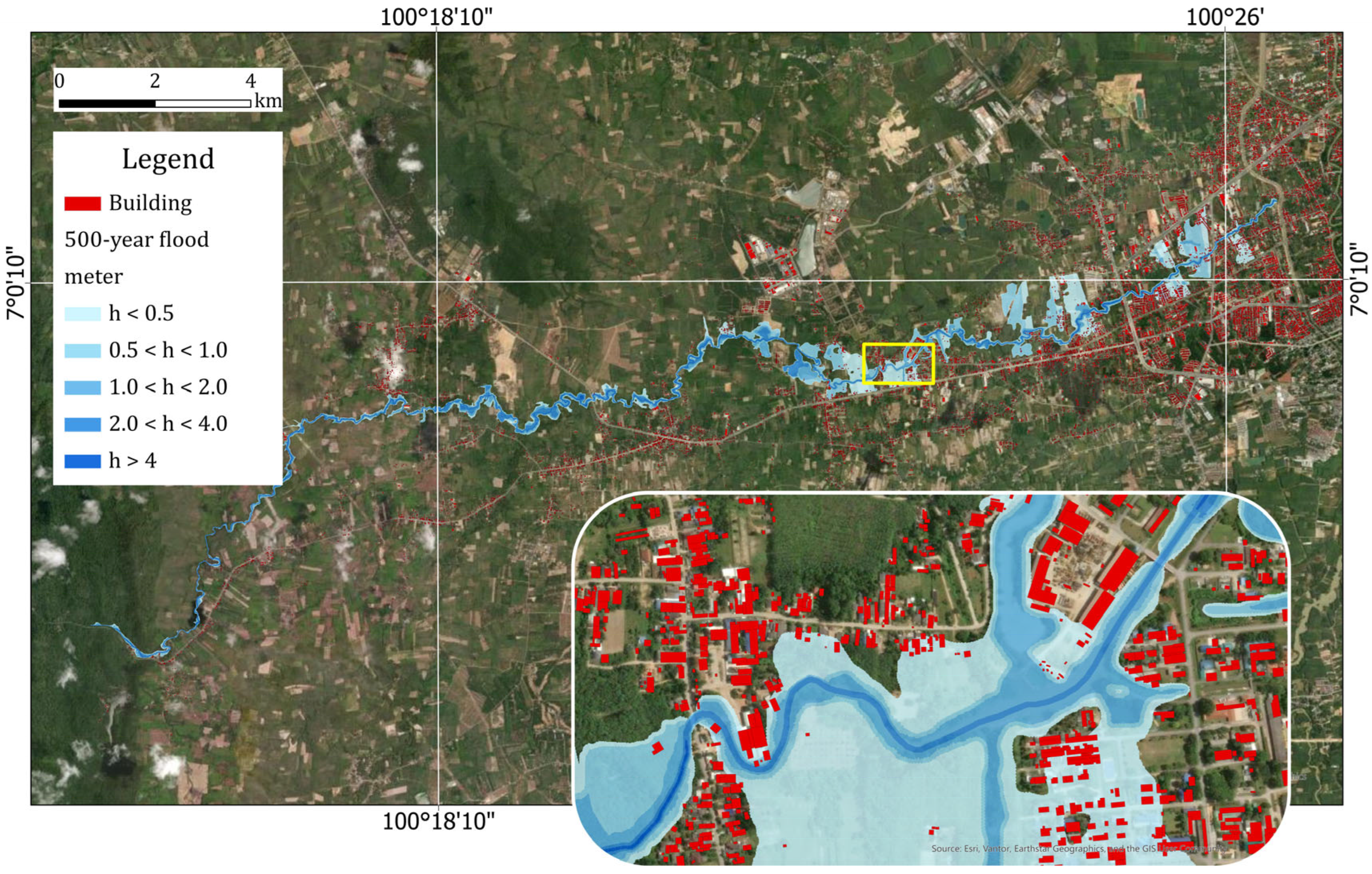 13]. For example, in Thailand, despite significant progress in water resource management, the lack of detailed, standardized flood hazard maps across numerous river basins hinders effective risk assessment and preventive planning [