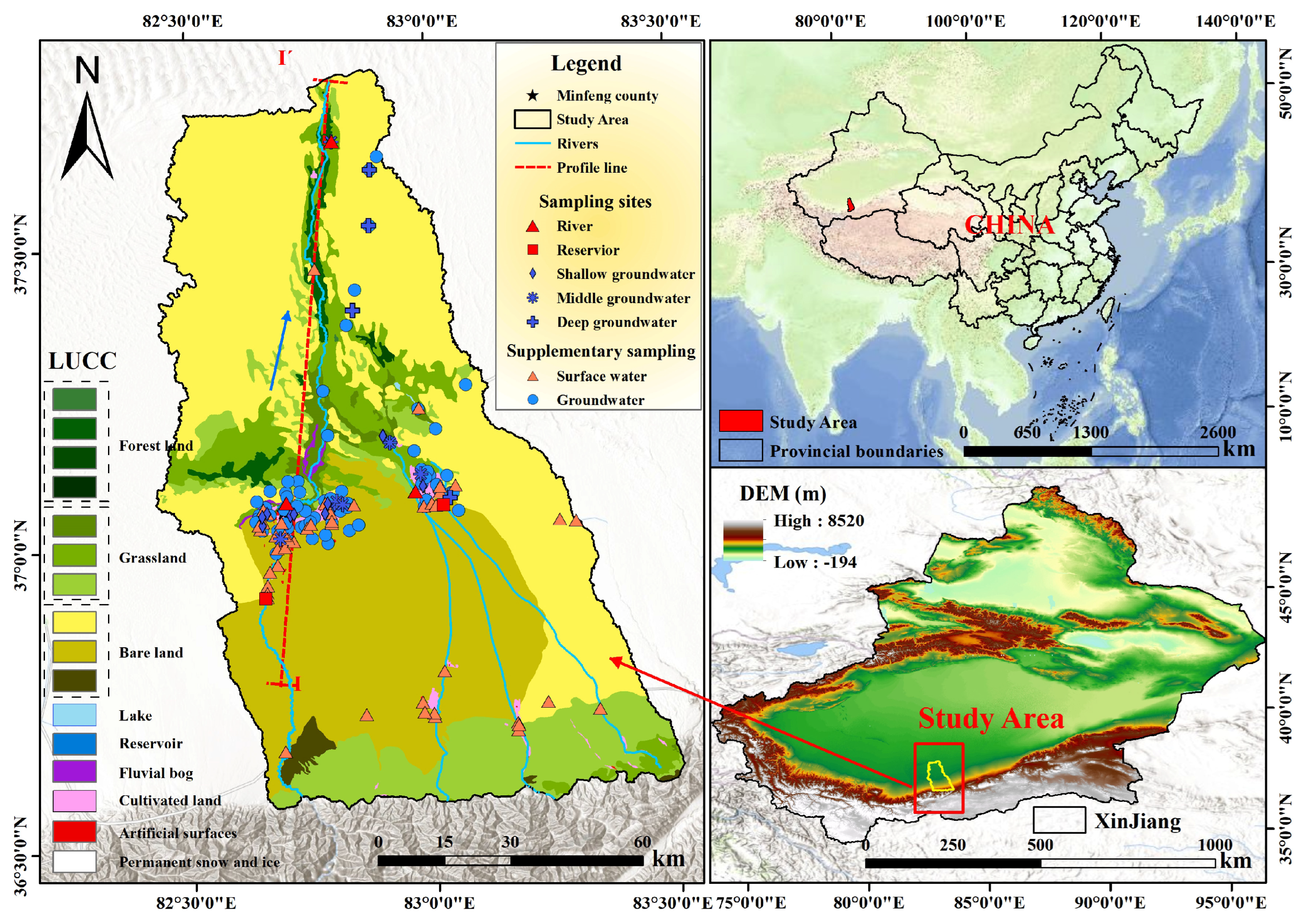 Human activities in the Niya River Basin are predominantly associated with agriculture within the oasis region, with secondary contributions from industrial and mining activities. Groundwater abstraction and large-scale irrigation practices significantly modify hydrodynamic conditions and solute transport pathways, thereby altering the hydrochemical composition of both surface water and groundwater [