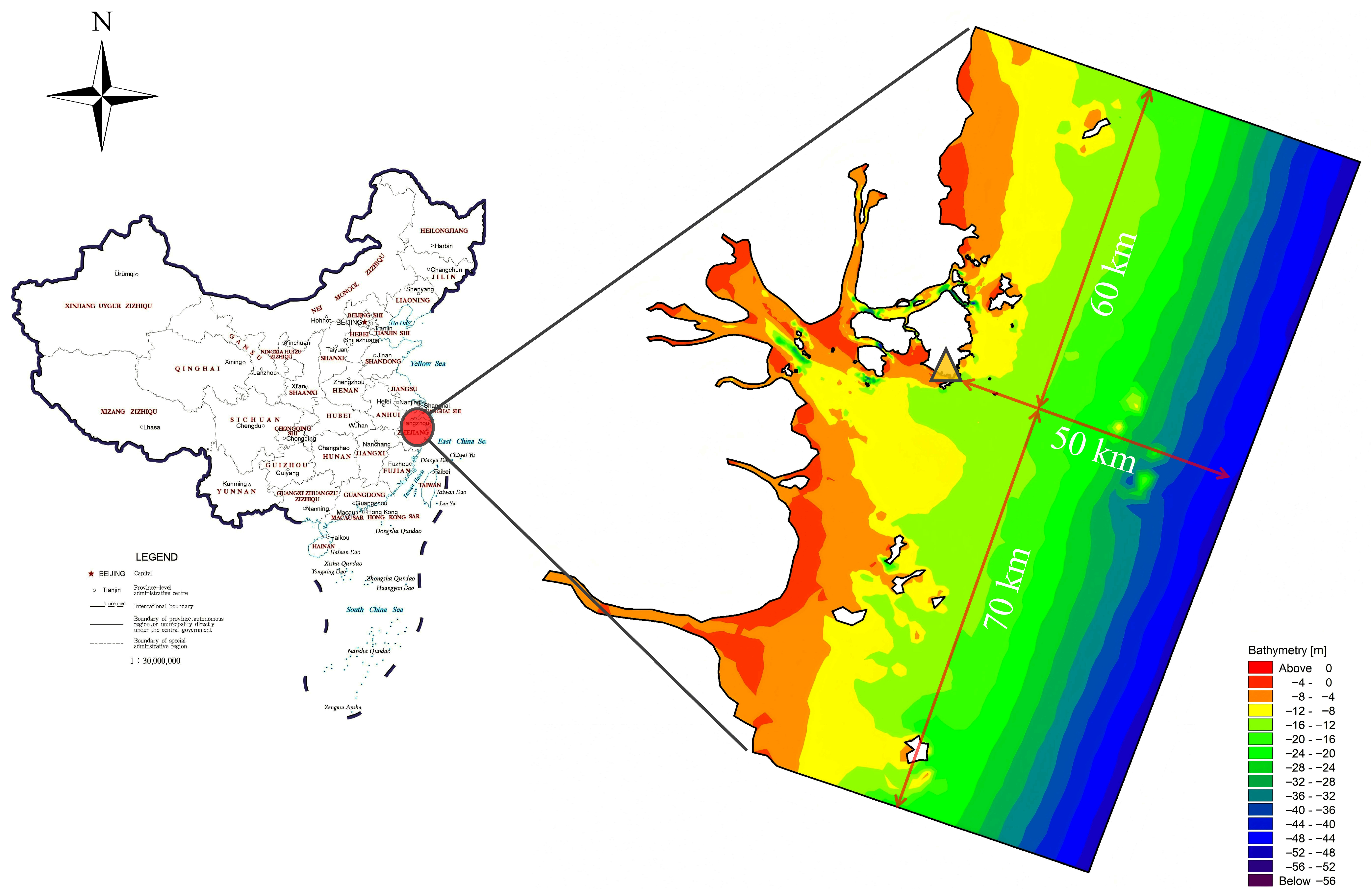 - Zhu, X.; Huang, C. Sensitivity analysis of parameters in thermal discharge numerical simulation. Radiat. Prot. Commun. 2021, 36, 6–10. (In Chinese) [Google Scholar]