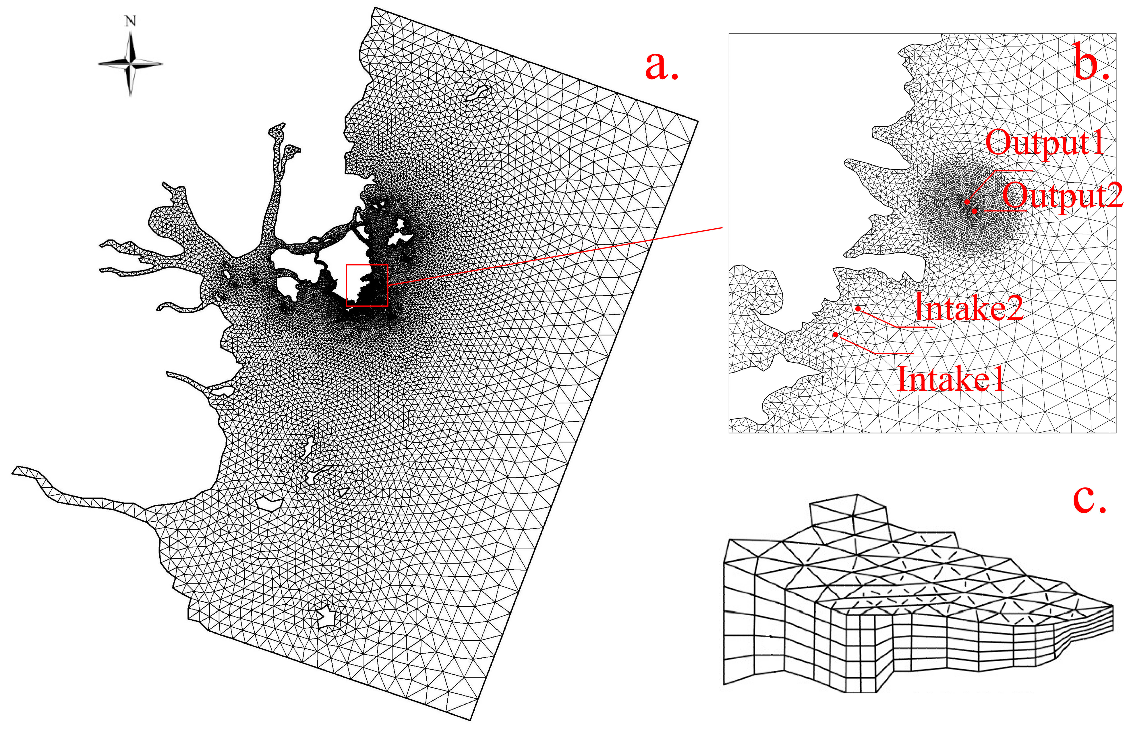 - Geng, B.; Lu, L.; Cao, Q.; Zhou, W.; Li, S.; Wen, D.; Hong, M. Three-dimensional numerical study of cooling water discharge of Daya Bay Nuclear Power Plant in southern coast of China during summer. Front. Mar. Sci. 2023, 9, 1012260. [Google Scholar] [CrossRef]