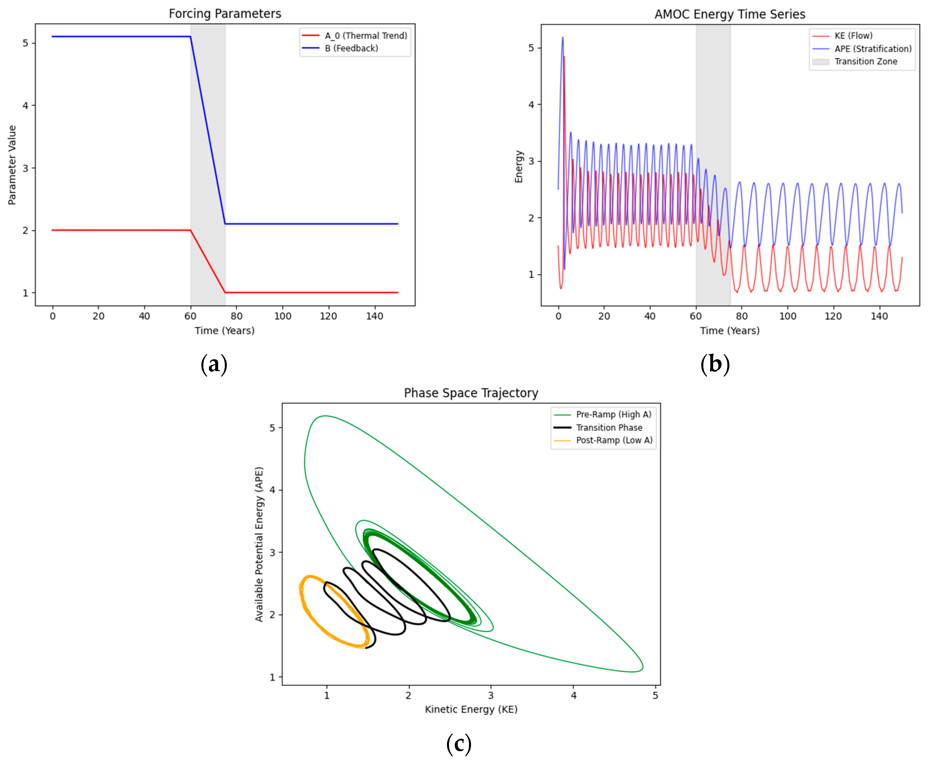 39. van Westen, R.M.; Vanderborght, E.; Kliphuis, M.; Dijkstra, H.A. Physics-Based Indicators for the Onset of an AMOC Collapse Under Climate Change. J. Geophys. Res. Ocean. 2025, 130, e2025JC022651. [Google Scholar] [CrossRef]