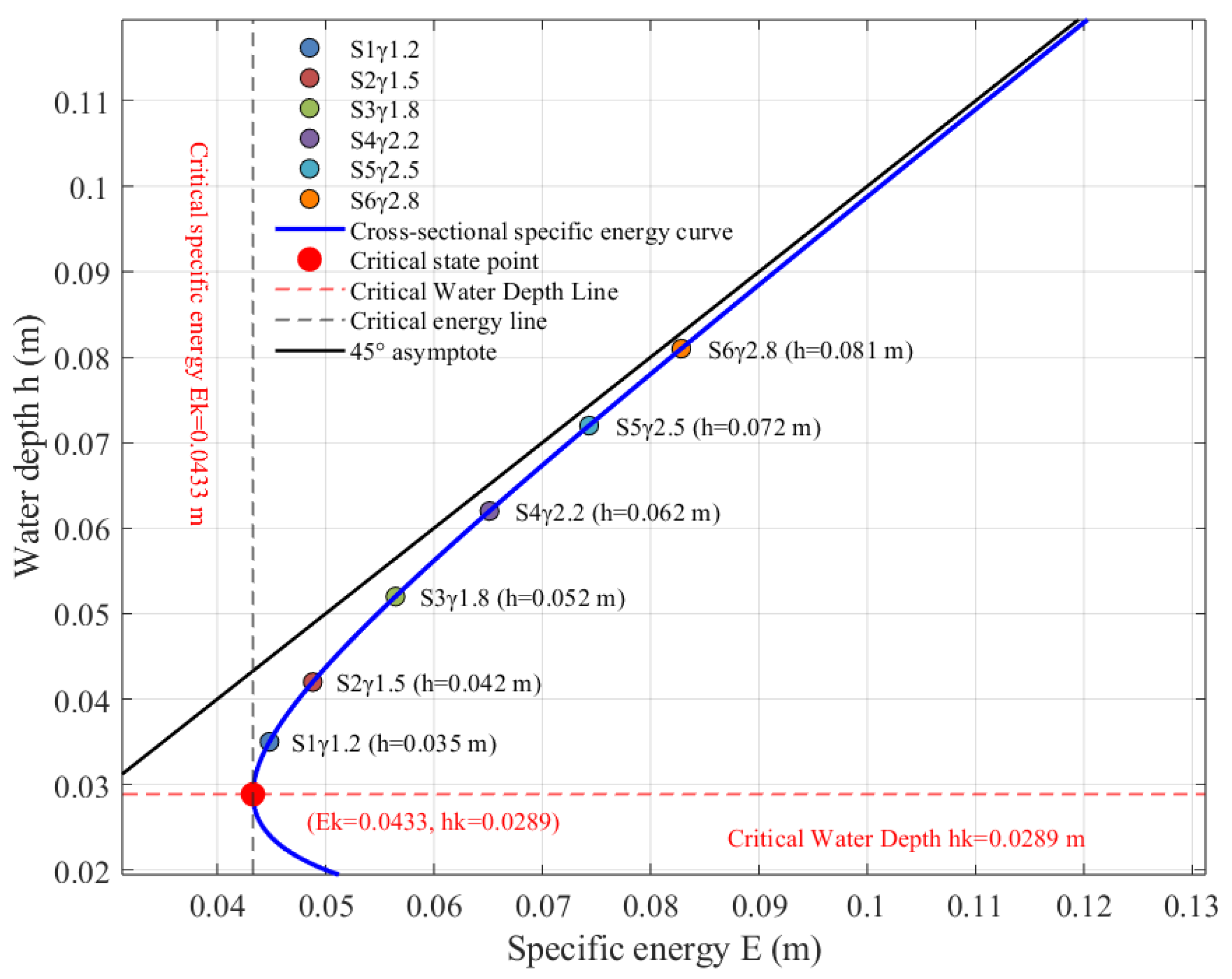 3.1. Cross-Sectional Distribution of Specific Energy