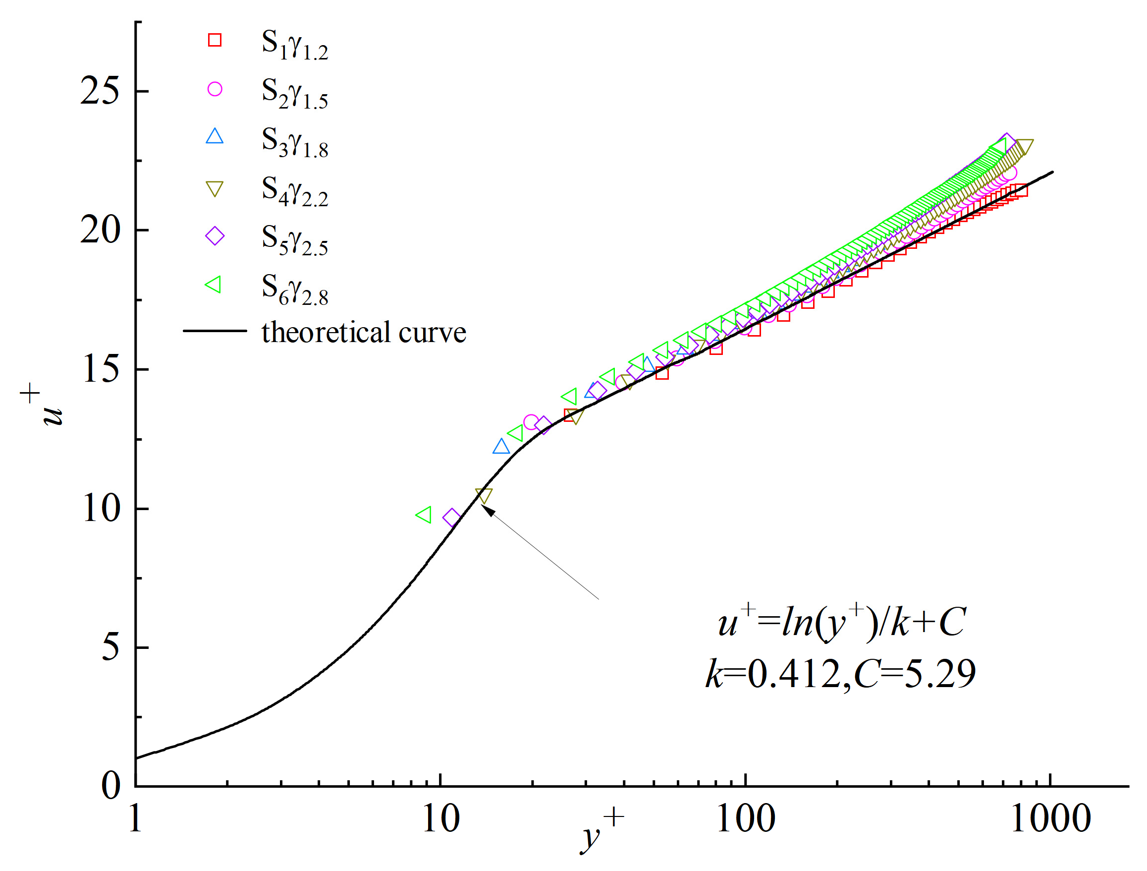 - Inner-layer velocity follows the log law; outer-layer velocity departs as depth increases.