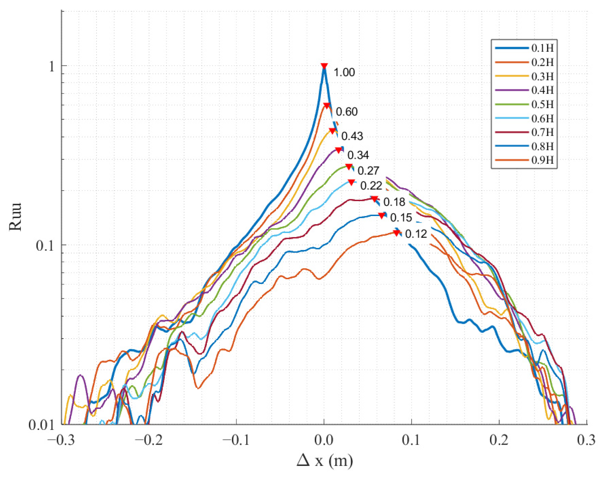 - Tutkun, M.; George, W.K.; Delville, J.; Stanislas, M.; Johansson, P.B.V.; Foucaut, J.M.; Coudert, S. Two-point correlations in high Reynolds number flat plate turbulent boundary layers. J. Turbul. 2009, 10, N21. [Google Scholar] [CrossRef]