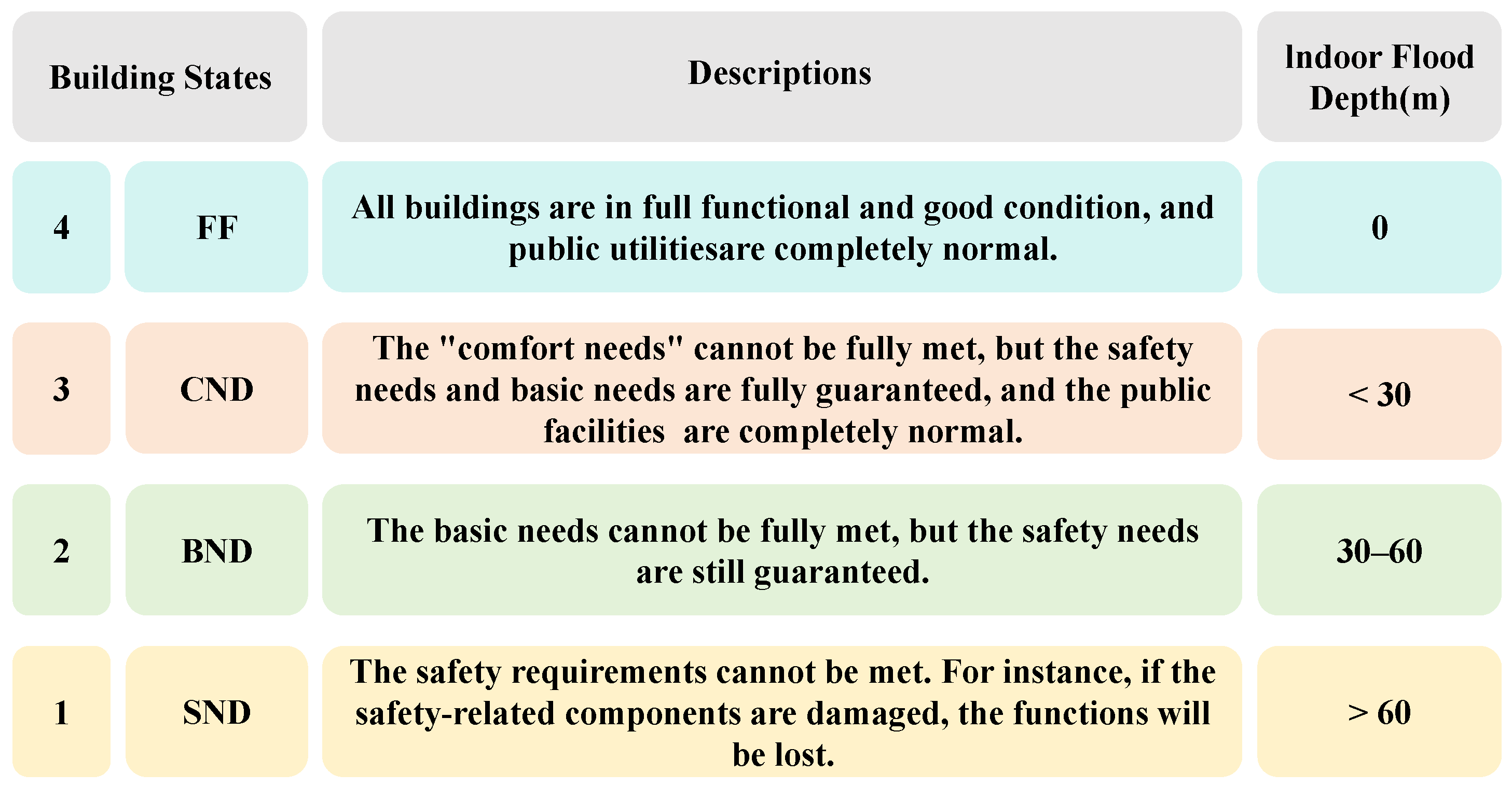 4) is defined as the target state for restoring community building functionality. For individual buildings, the probability of reaching this state at time t can be directly derived from Equation (12) in