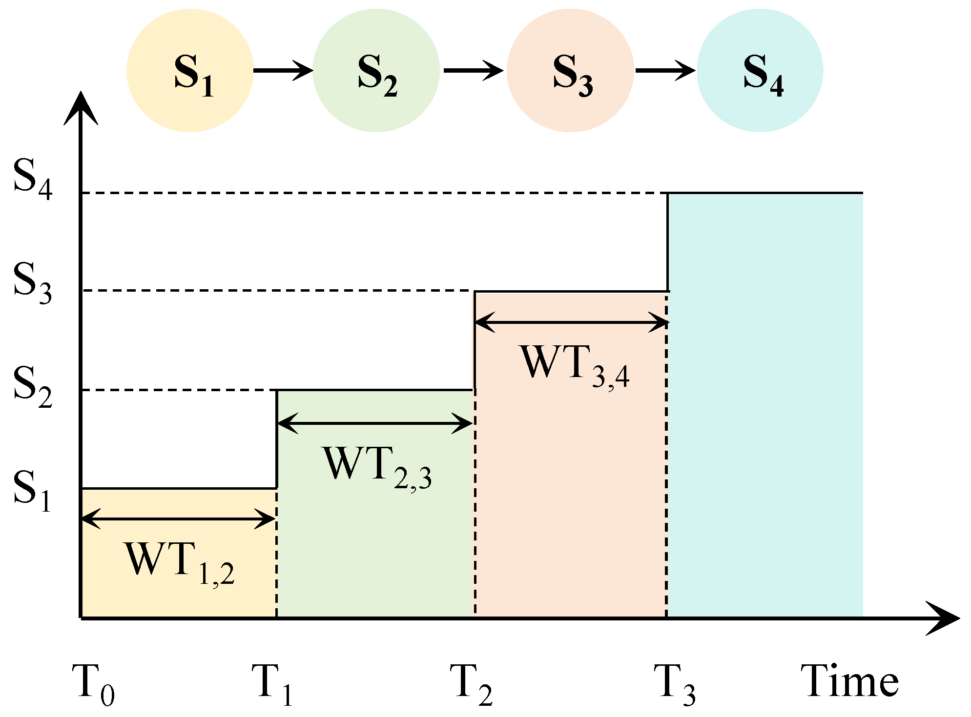 t) in the transition matrix represents the difference between the recovery functions of two adjacent states. The probability vector can then be obtained by multiplying the initial vector by the transition matrix, as shown in Equation (13):
