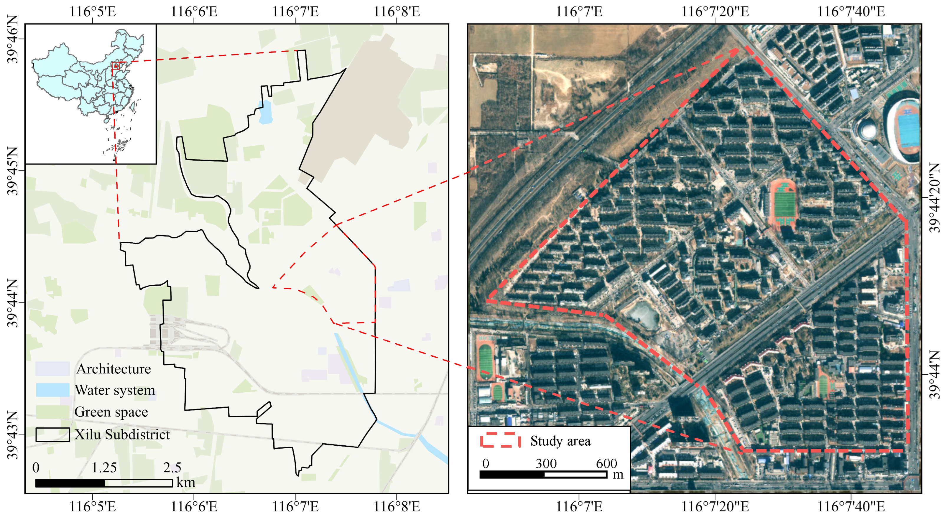 44], significant cross-system dependencies exist among community systems, meaning the functionality of a single system relies on support from other interconnected systems. For instance, the accessibility of the road network is a prerequisite for the functioning of other community systems. Drawing on the holistic functional assessment framework proposed by Hassan et al., this study divides community functions into two layers: connectivity (represented by roads) and functionality (represented by buildings and green spaces) [