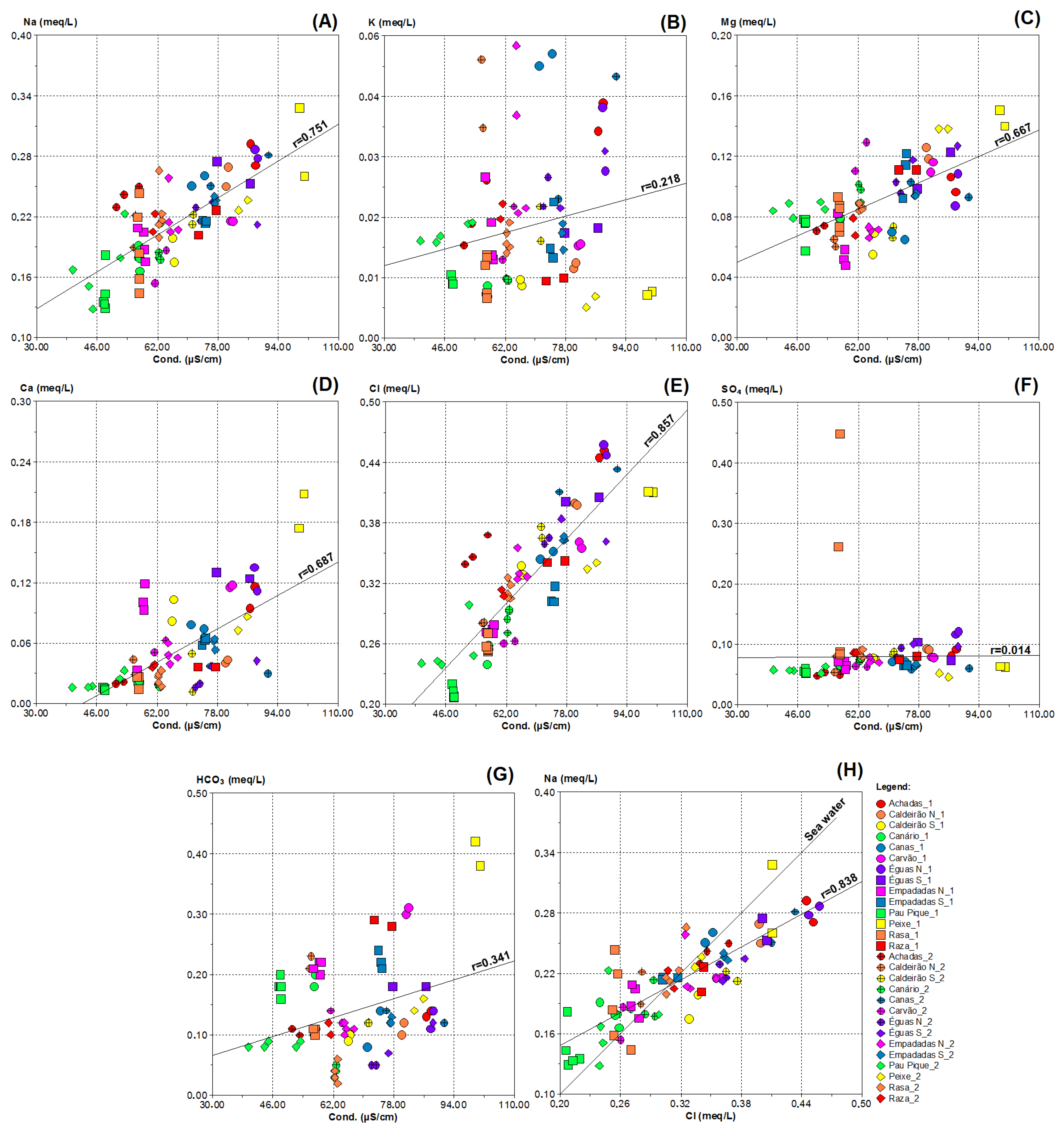- Cruz, J.V.; Andrade, C.; Ferreira, L.; Viveiros, F. Lake water composition in oceanic islands. Water 2025, 17, 1849. [Google Scholar] [CrossRef]
