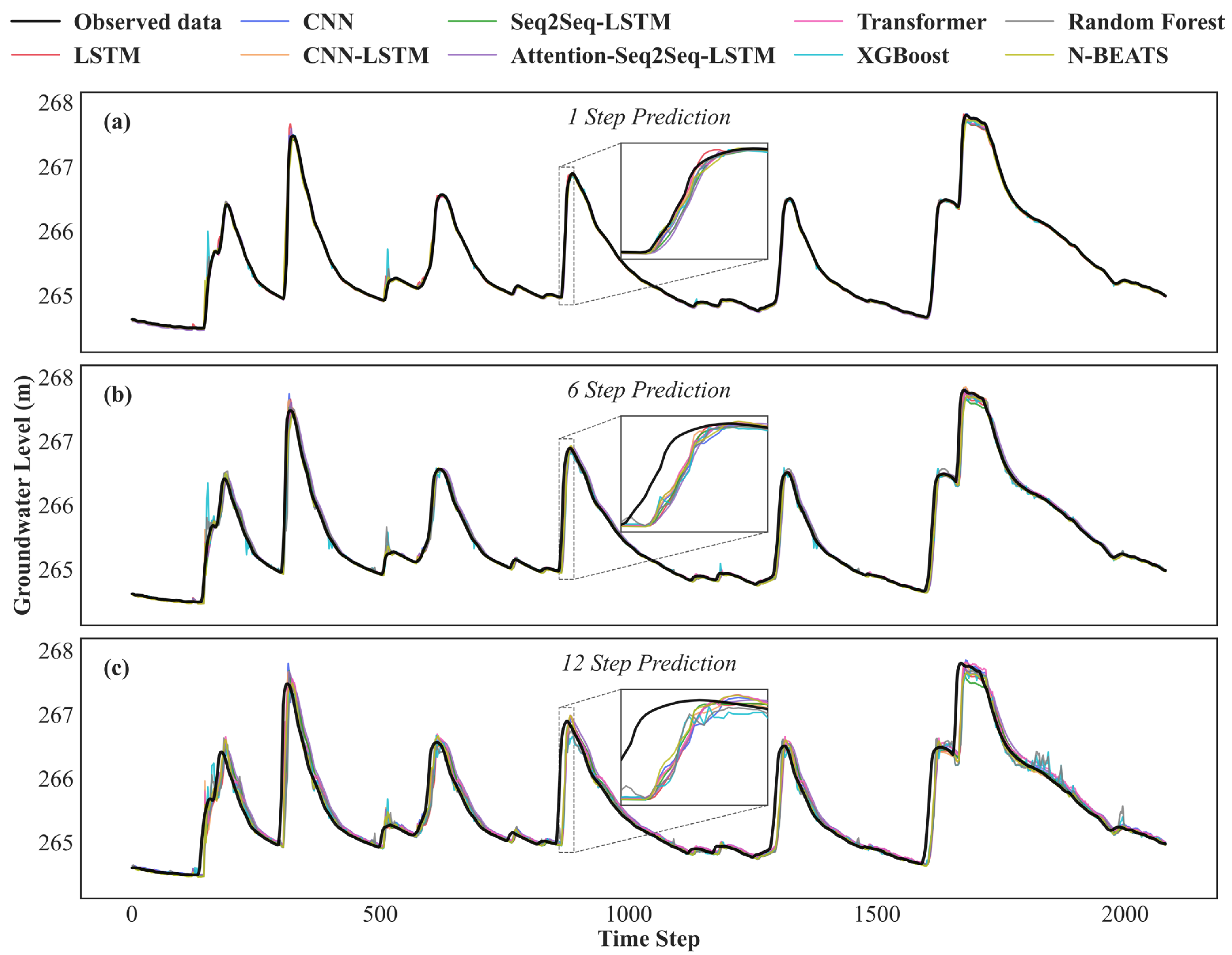 Overall, deep learning models demonstrated superior performance compared to traditional machine learning methods in groundwater level prediction, consistent with findings from other studies [