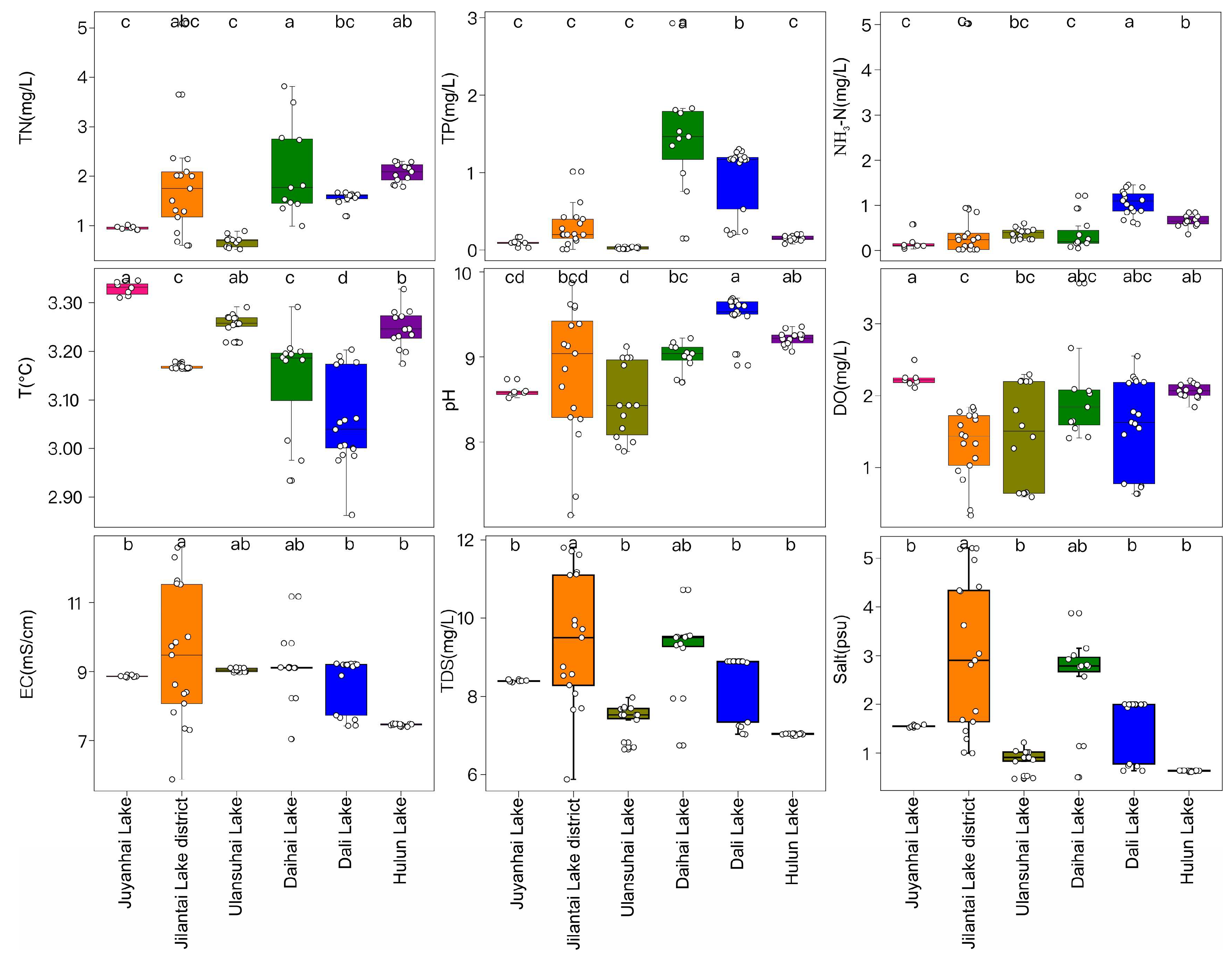 - Shi, Y.; Li, W.; Guo, X. Exploring environment-specific regulation Characterizing bacterioplankton community dynamics in a typical lake of Inner Mongolia, China. Environ. Res. 2024, 253, 119154. [Google Scholar] [CrossRef] [PubMed]