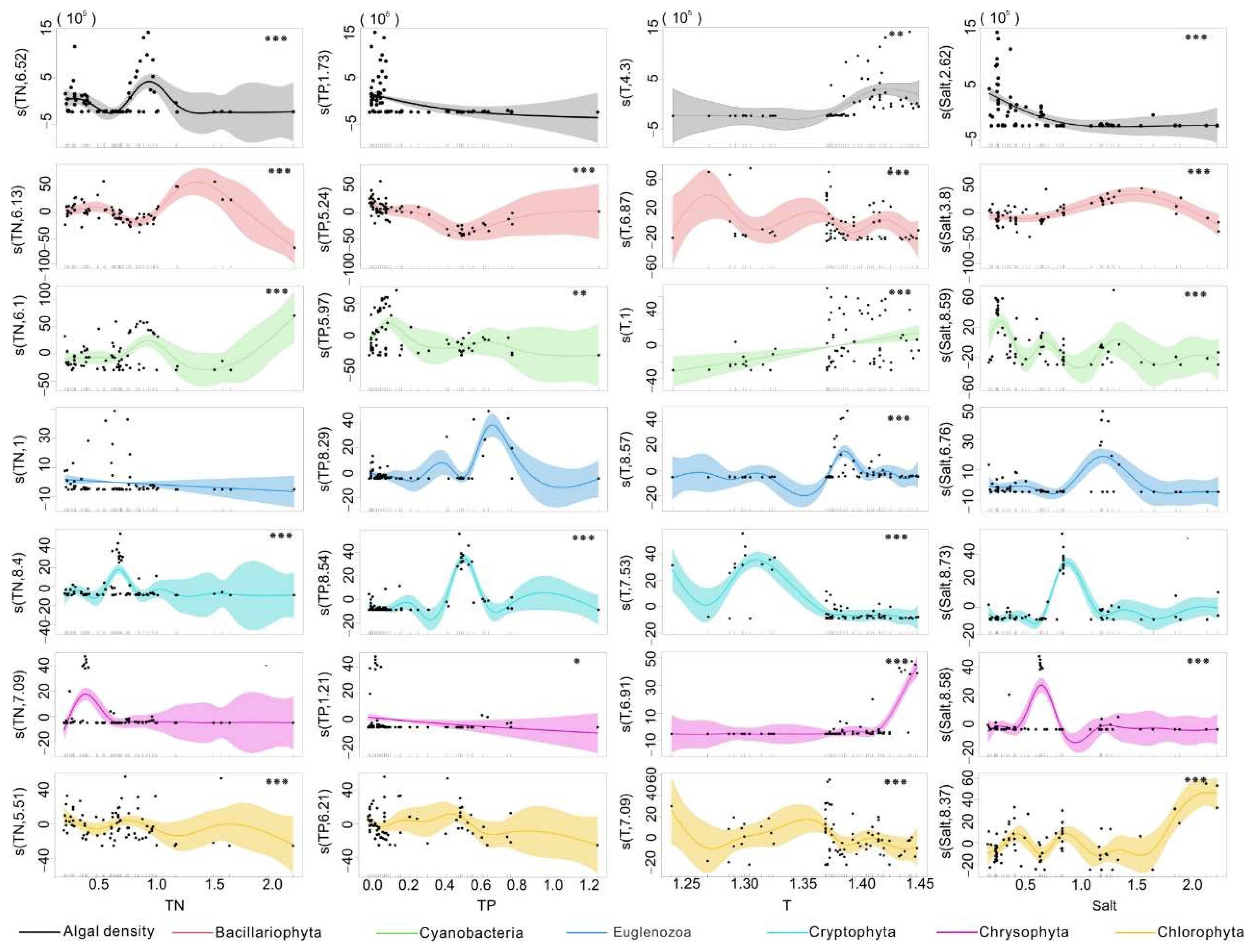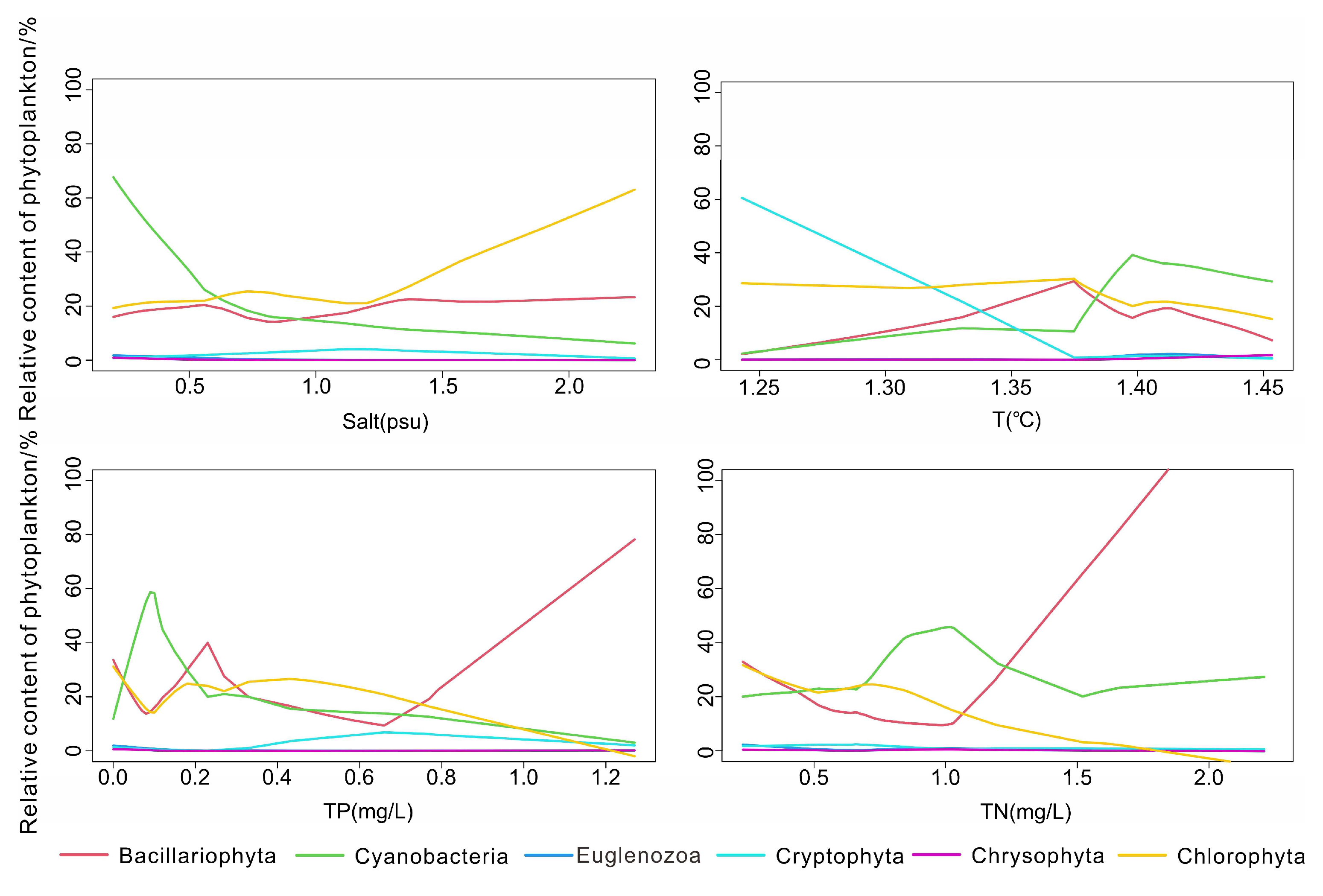 3.6. Generalized Additive Models of Phytoplankton Relative Abundance