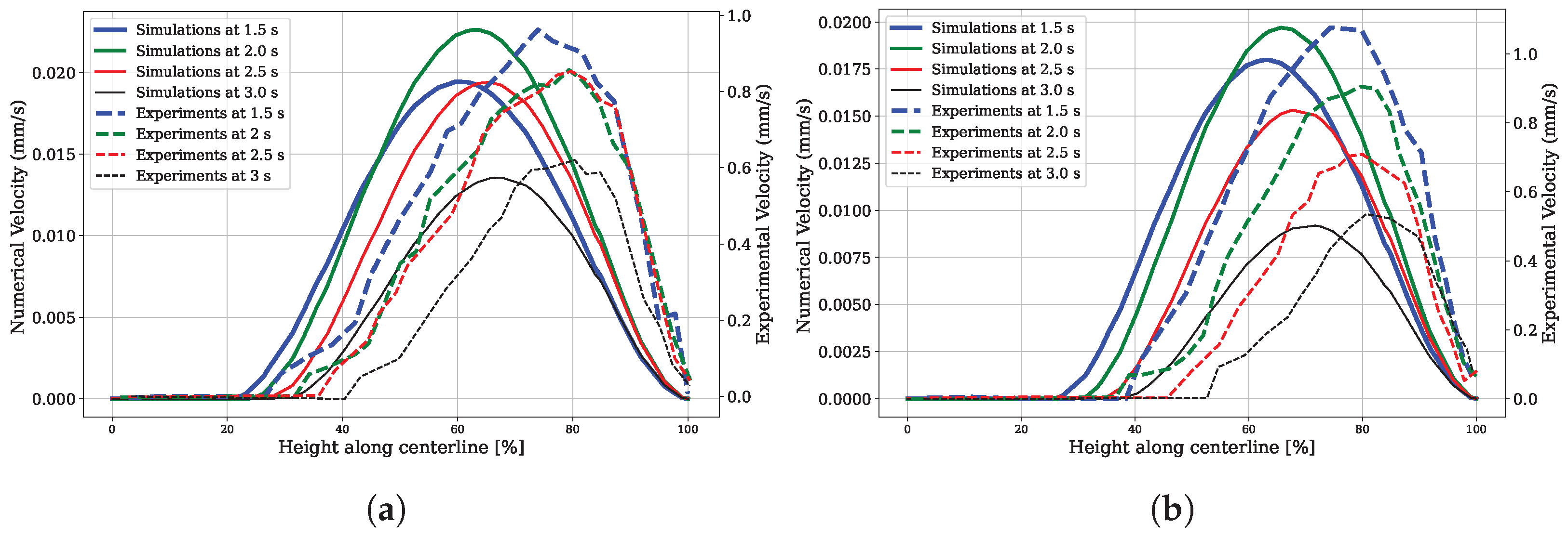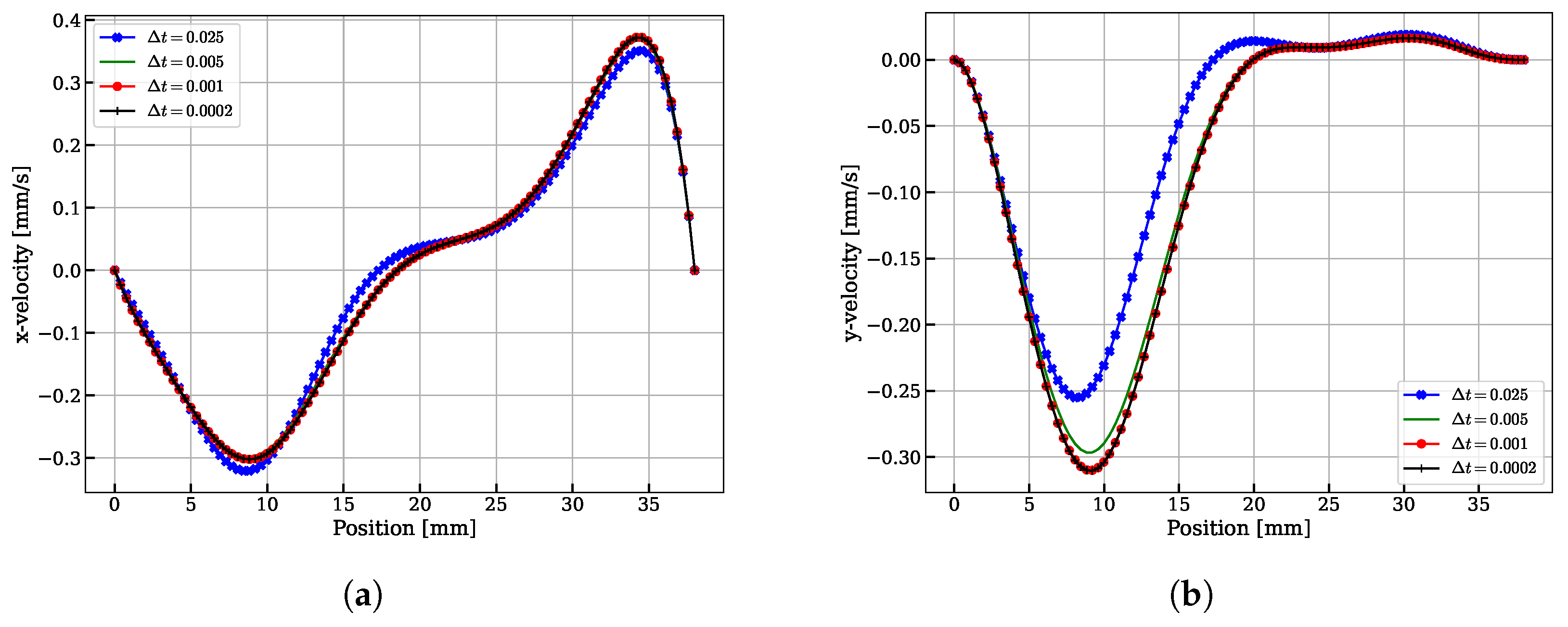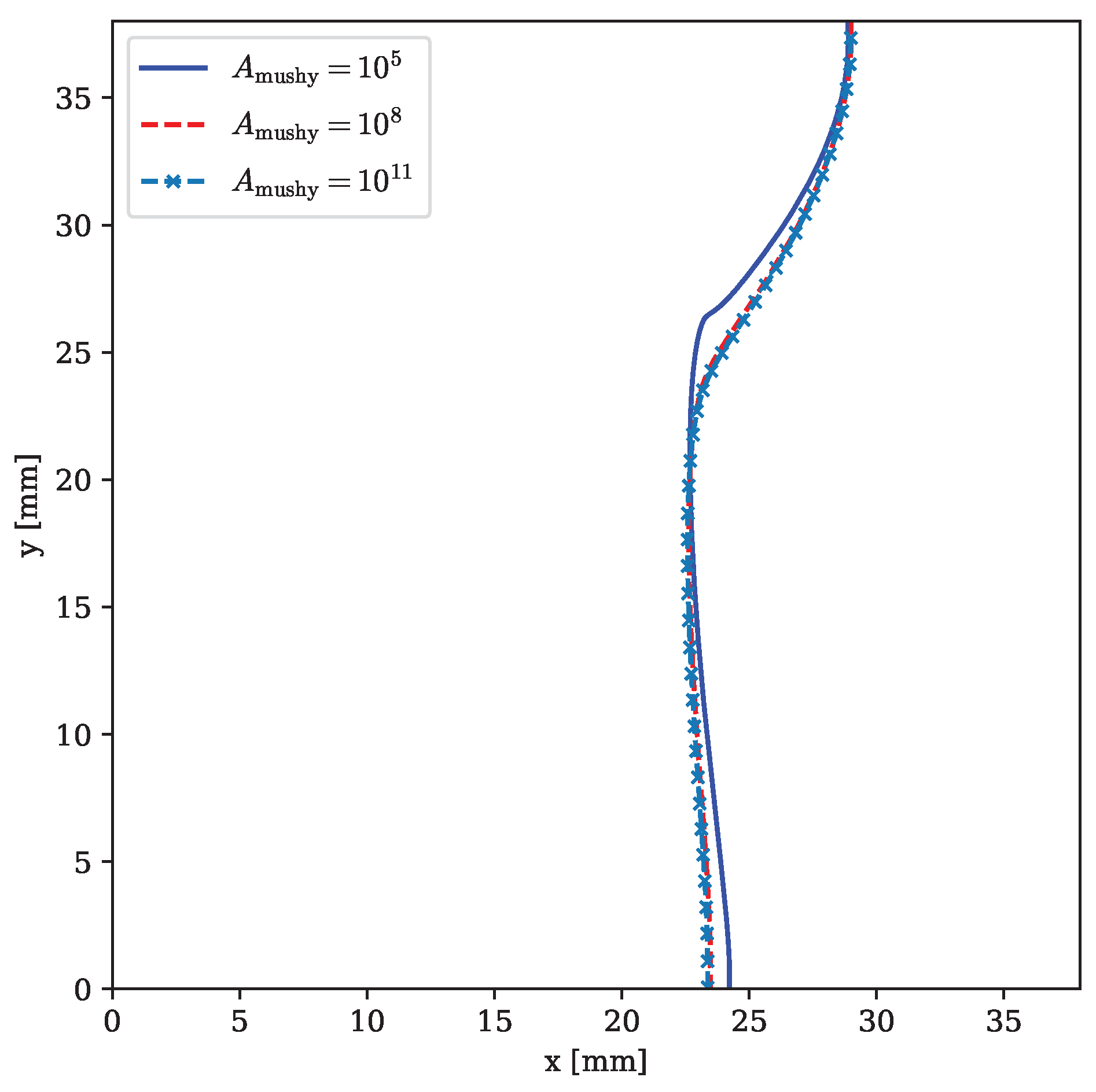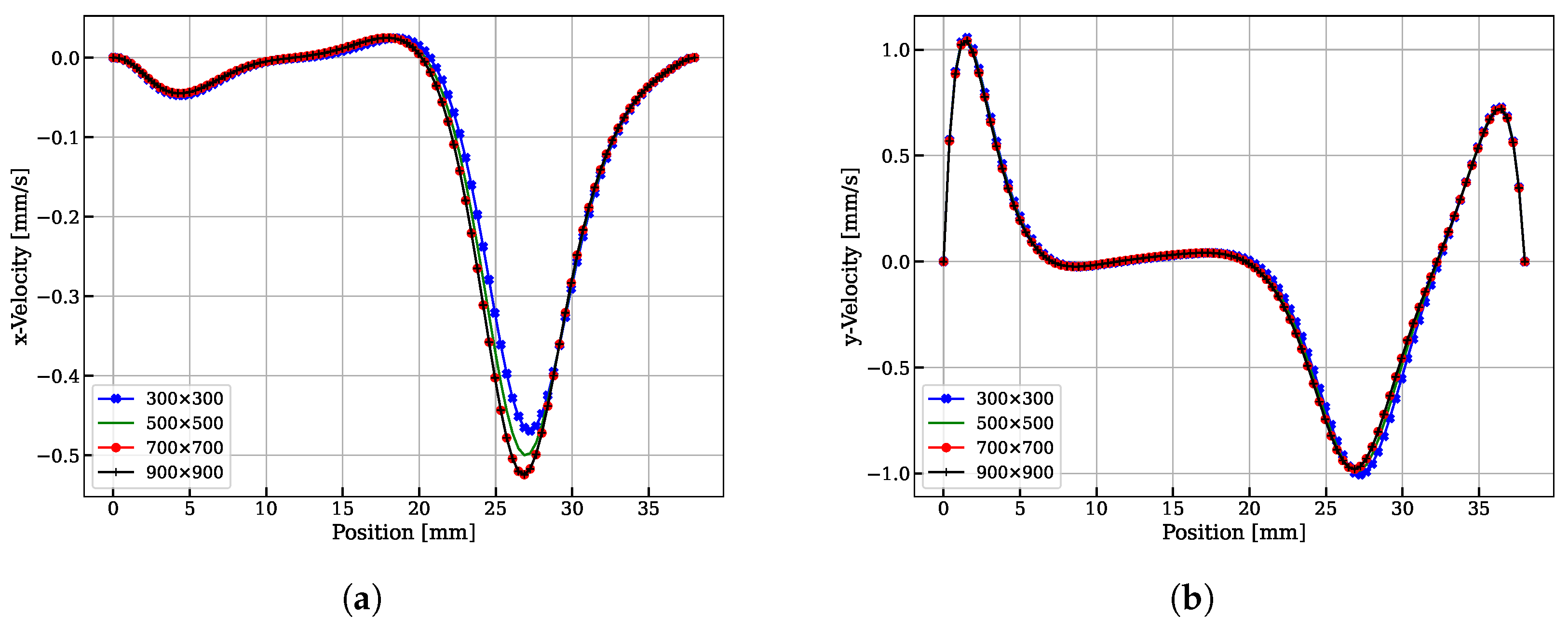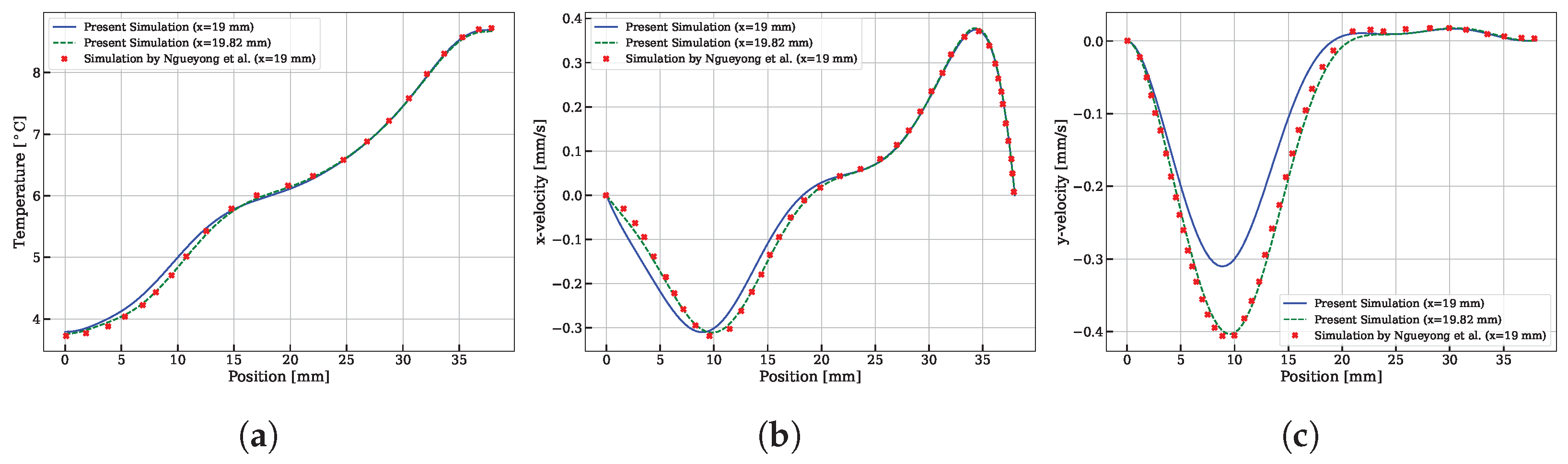 3.1.3. Validation of Coupled Solidification–Convection in a Cavity