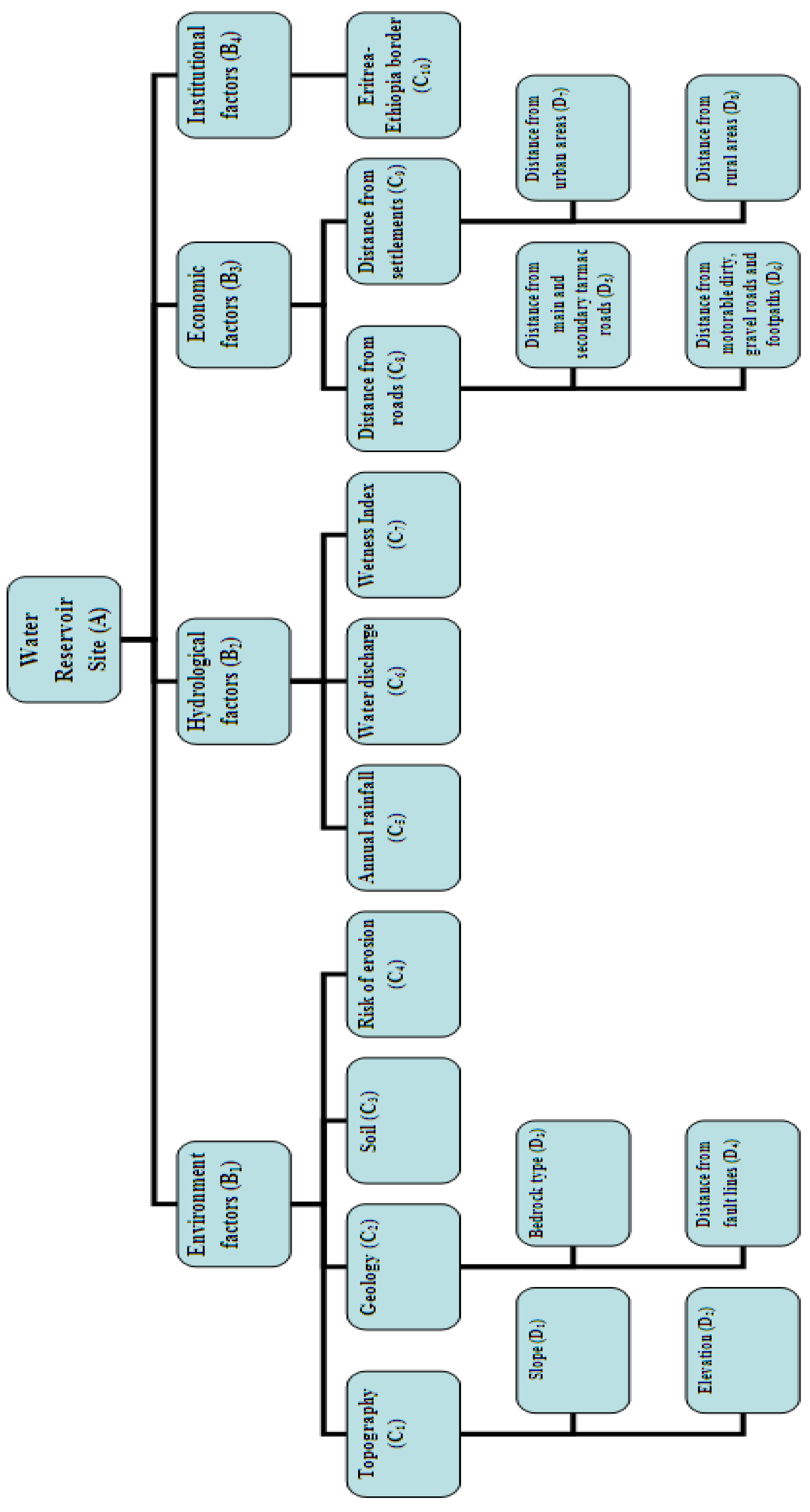 Figure 4, according to their suitability for the construction of a water reservoir. The AHP is an iterative technique, which consists of a number of stages that can be modified to suit a particular problem. For this research, the stages followed in implementing the AHP are shown in