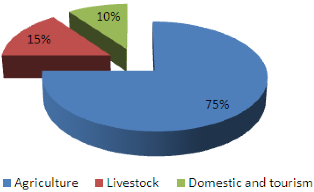 Percentage of the total water consumption by sector in Rheraya catchment.