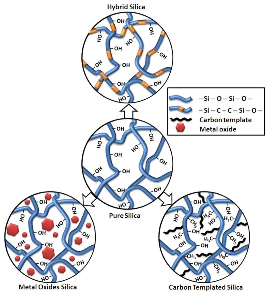 Schematic representation of various strategies for silica modification.