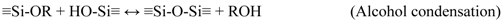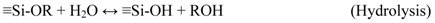 Amorphous silica materials that can be tailored to pore sizes in the range of 3–5 Å are highly suitable for selective membranes in water desalination applications. Several techniques have been widely developed to effectively control the pore size of silica derived membranes, including sol-gel methods [24,25,26,27,28,29,30,31] and chemical vapour deposition (CVD) [32,33,34,35]. Although remarkable progress in gas separation applications have been reported using both methods, to date only silica membranes derived via sol-gel processes have been investigated for desalination applications. One of the major reasons is that the sol-gel method is one of the most simple and cost effective routes, which still offers the flexibility to tailor the required porosity. Traditionally, the sol-gel method is a wet chemical process to fabricate metal oxide powders starting from a chemical solution which acts as a precursor for an integrated network (gel). This method is frequently adopted in membrane synthesis or membrane pore modification due to its controllability and homogeneity [24,30,36,37,38], and it includes various steps such as sol preparation, gel formation, drying and thermal treatment. Many types of silicon alkoxide precursors have been utilized, but the clear majority of research describes work using tetraethoxysilane (TEOS) [39,40,41]. The sol gel synthesis has been well described in a variety of reference materials [42], and so briefly it involves the hydrolysis (Equation (3)) and condensation reactions (Equations (4) and (5)) of a metal alkoxides to form a network. In the hydrolysis reaction, the alkoxide groups (OR, where R is an alkyl group, CxH2x+1) are replaced with hydroxyl groups (OH). The silanol groups (Si-OH) are subsequently involved in the condensation reaction producing siloxane bonds (Si-O-Si), alcohols (R-OH) and water. The desired microporous structure of the silica layer is thus partially determined by both the reactivity and the size of the precursors, but also by the appropriate selection of the precursor, water, alcohol and catalyst concentrations.