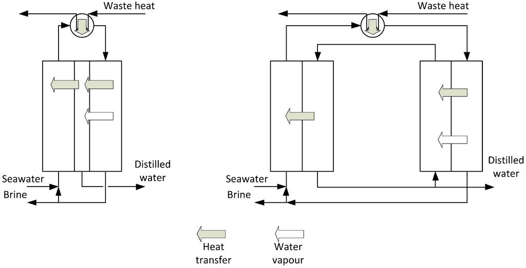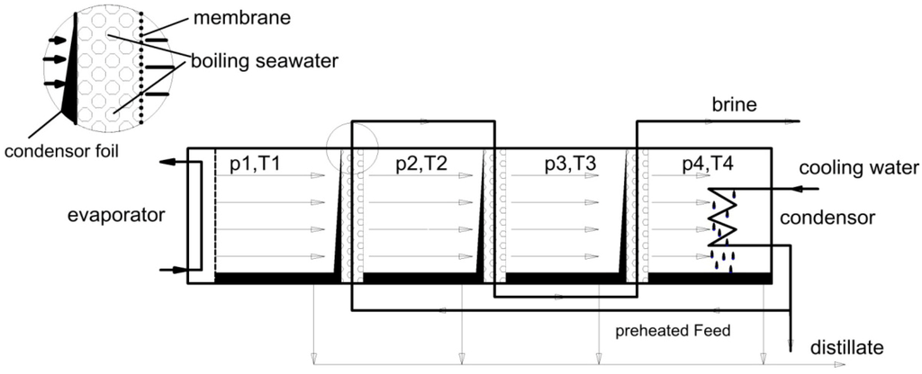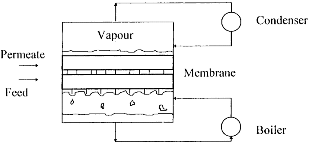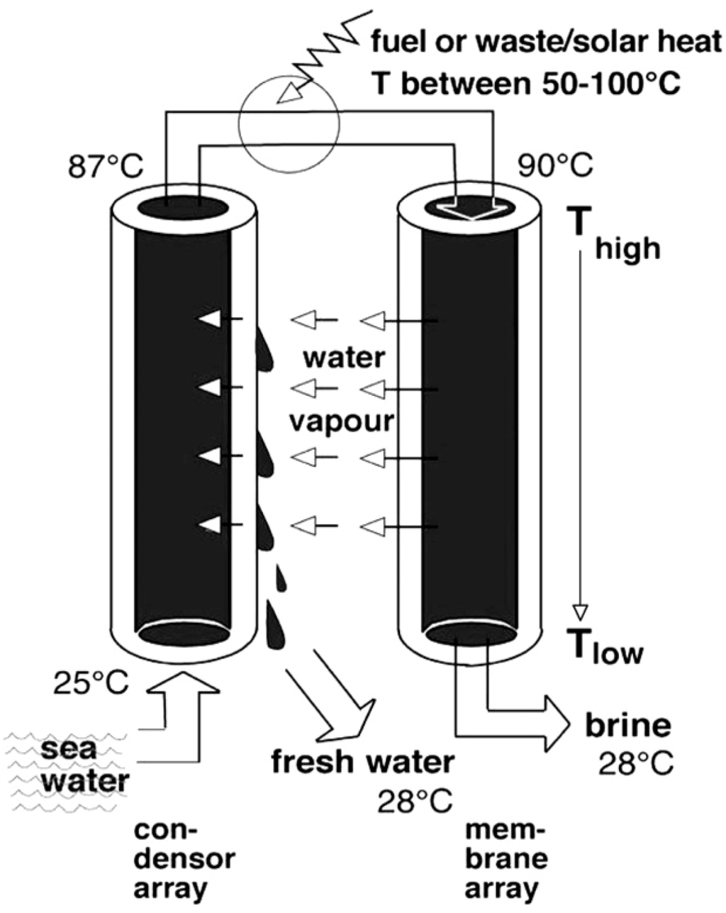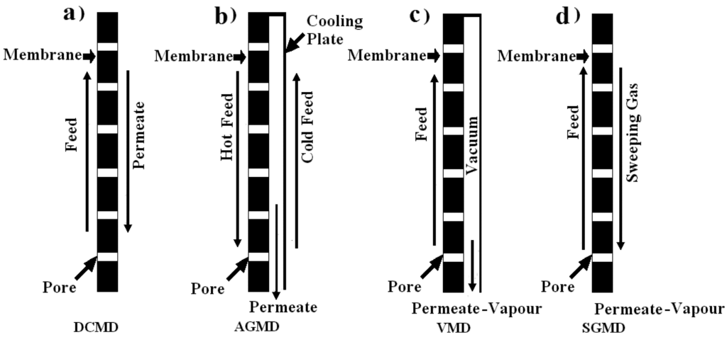 Figure 1 illustrates four configurations of the MD system, which differ based on the nature of the cold side processing of the permeate [6,14]: