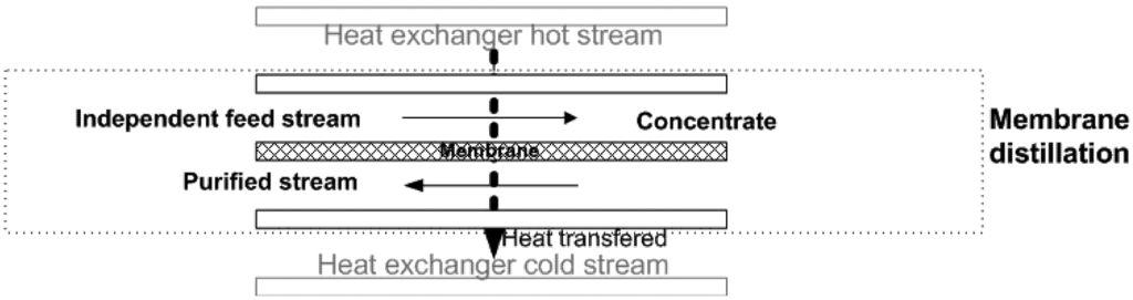 Membrane distillation (MD) is a thermal, membrane-based separation process [1,2]. The driving force for the MD processes is quite different from other membrane processes, being the vapor pressure difference across the membrane rather than an applied absolute pressure difference, a concentration gradient or an electrical potential gradient, which drives mass transfer through a membrane [1,3].