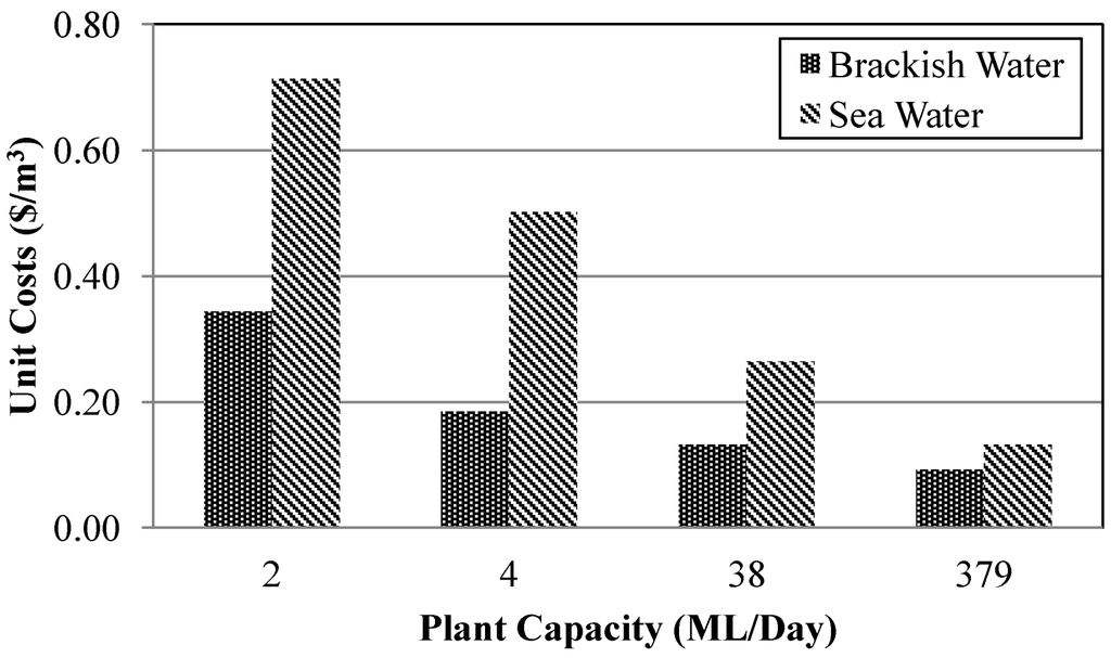 - Water Reuse Association (WRA), Seawater Desalination Costs. White Paper; WRA: Alexandria, VA, USA, September 2011; p. 26.