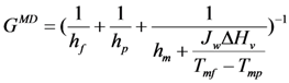 | hm | membrane heat transfer coefficient (kW m−2) |