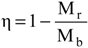 Efficiency varies with the mass of pollutant spilled into the receiver. The trend of the efficiency index η is shown in