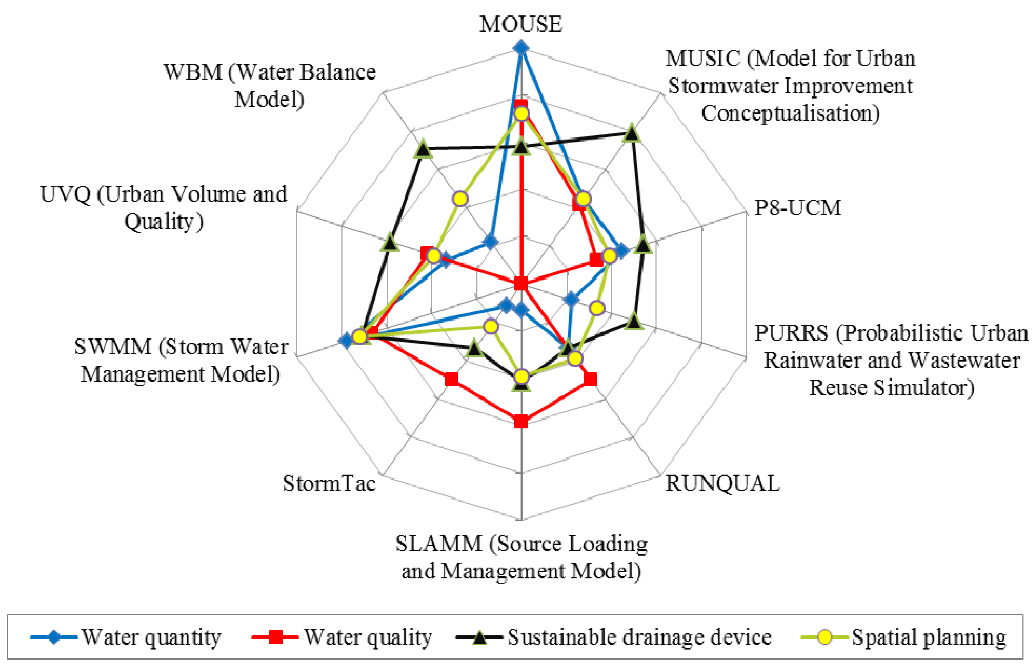 - Obropta, C.C.; Kardos, J.S. Review of urban stormwater quality models: Deterministic, stochastic, and hybrid approaches. JAWRA J. Am. Water Resour. Assoc. 2007, 43, 1508–1523. [Google Scholar] [CrossRef]