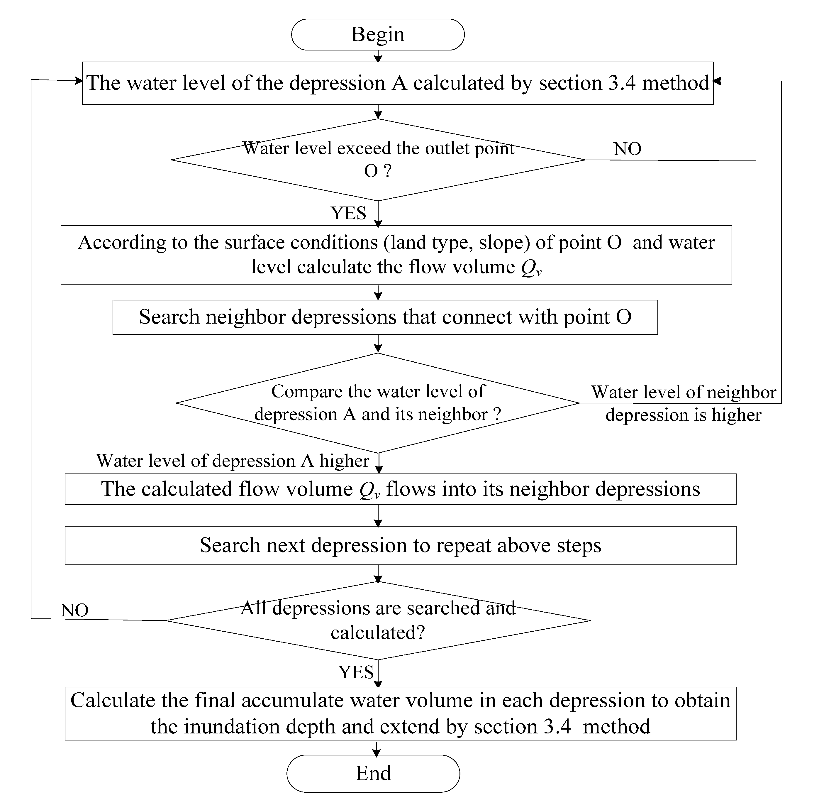 - Calculate the final accumulated water volume in each depression referring to Equation (6).