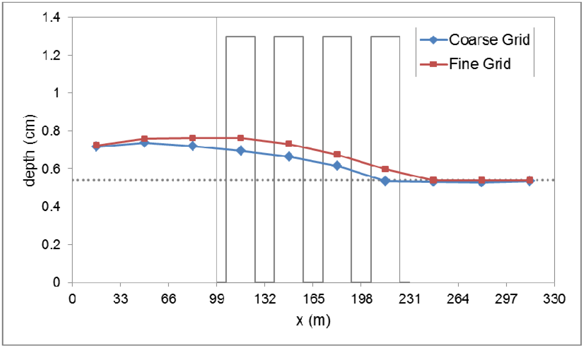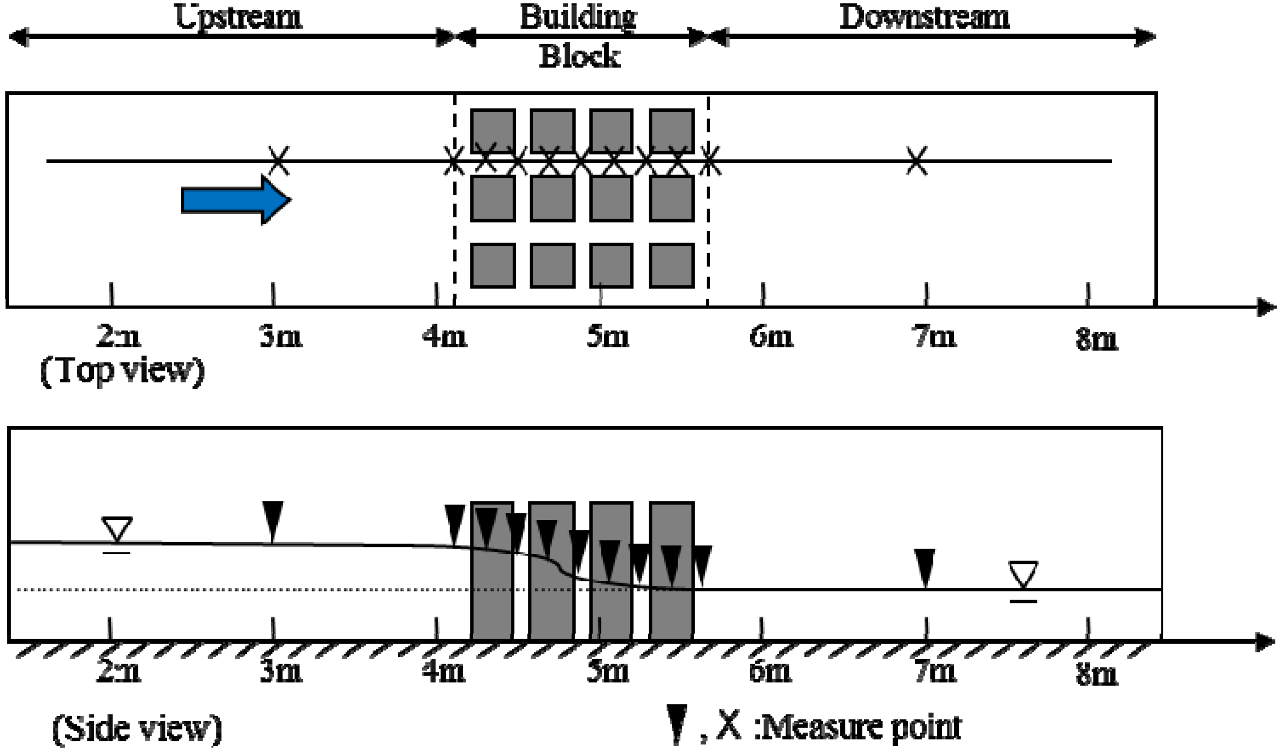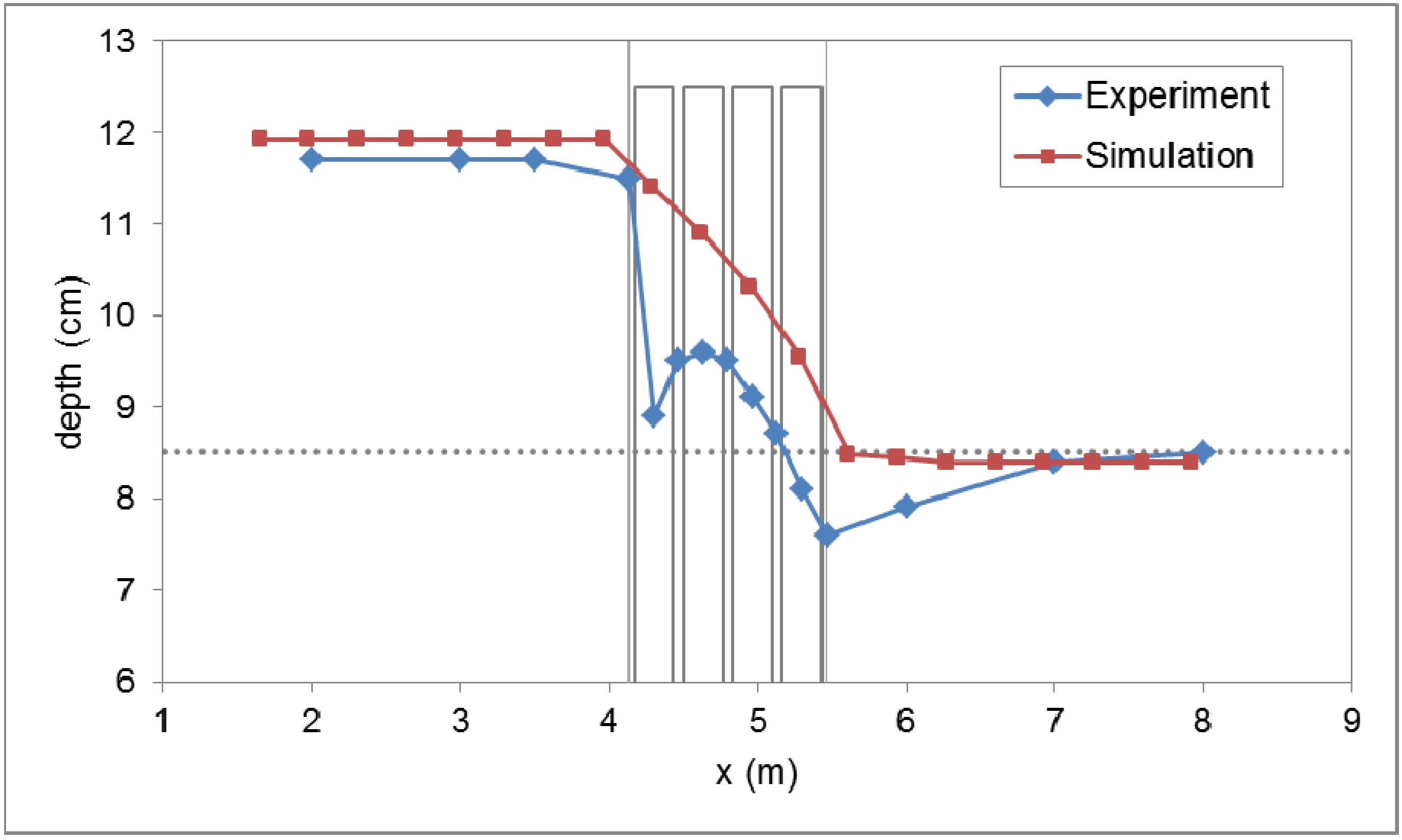 Table 1 shows the mean water depth and velocity of each setting. While the upstream water depth
