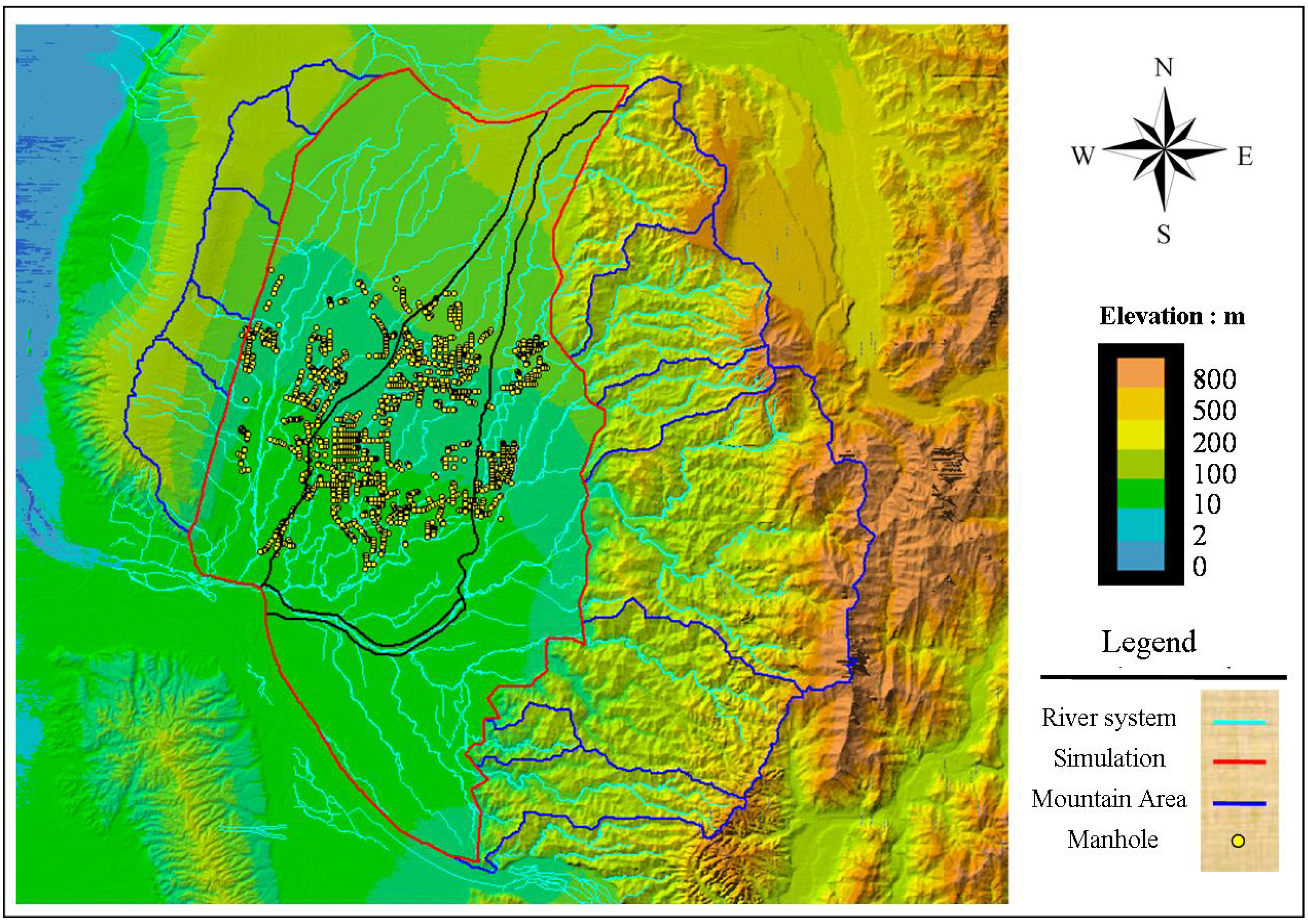 16] was adopted to solve the sewer system in Taichung City. The discharges drained by pumping stations are considered as the lateral outflows of the model, and the surcharges of manholes are regarded as point sources in the model [