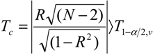 in which R is the cross-correlation coefficient between the sequences y1, …, yN and 1, …, N and T1 − ∞/2, v is the 1 − ∞/2 quantile of the Student’s t distribution with v = N − 2 degrees of freedom; ∞ is the significance level, which is 5% (or 95% confidence level).