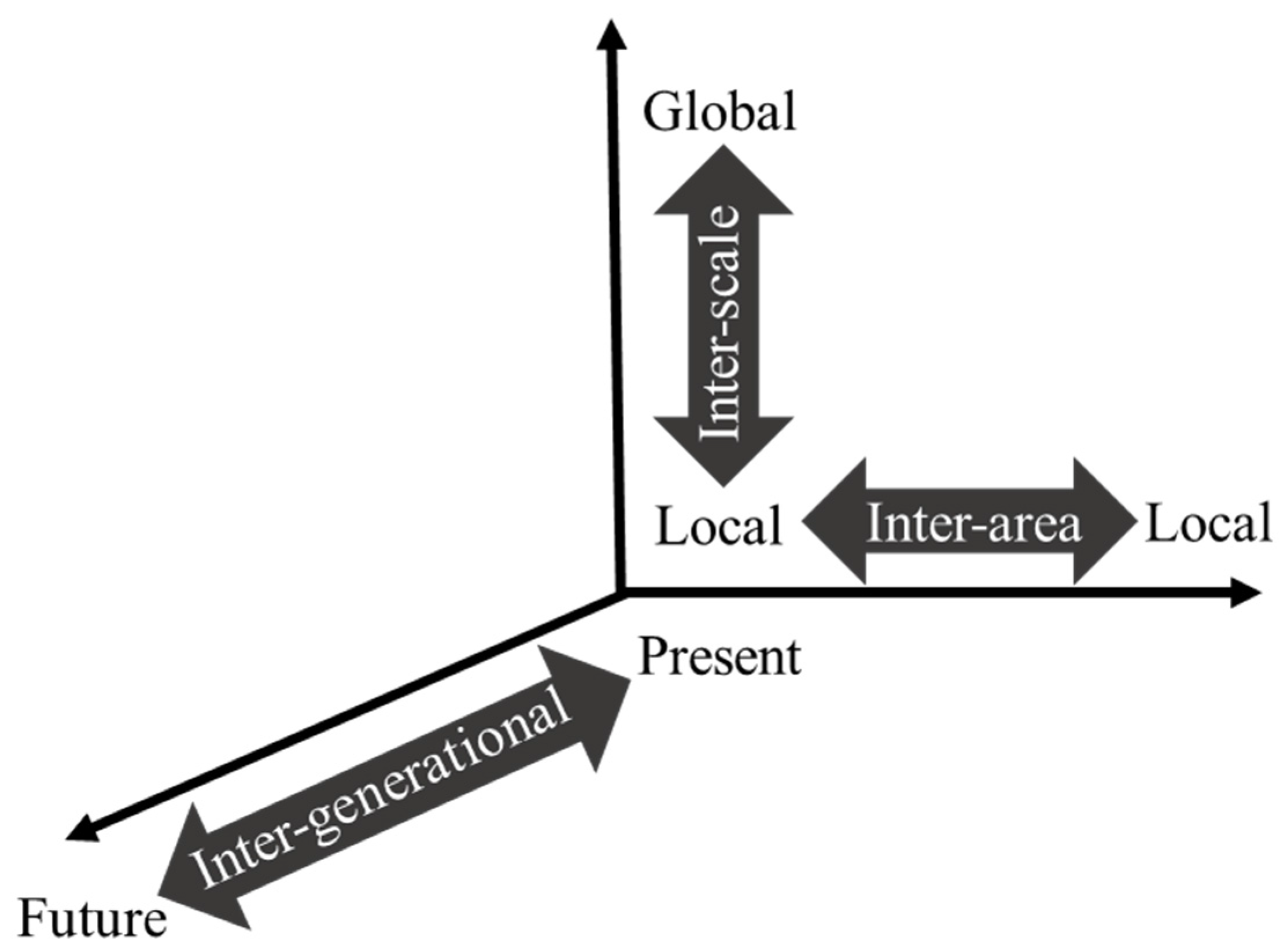 Figure 5). Ways of connecting local nexus issues within a community to broader national and global nexus issues (the vertical dimension) are often missing from site-specific case studies. At the same time, it is important to understand how an incident related to WEF resources and resource users in one case study area could affect other case study areas (the horizontal dimension). Finally, we should also consider how current events are likely to impact future WEF resources and resource users on a temporal scale.