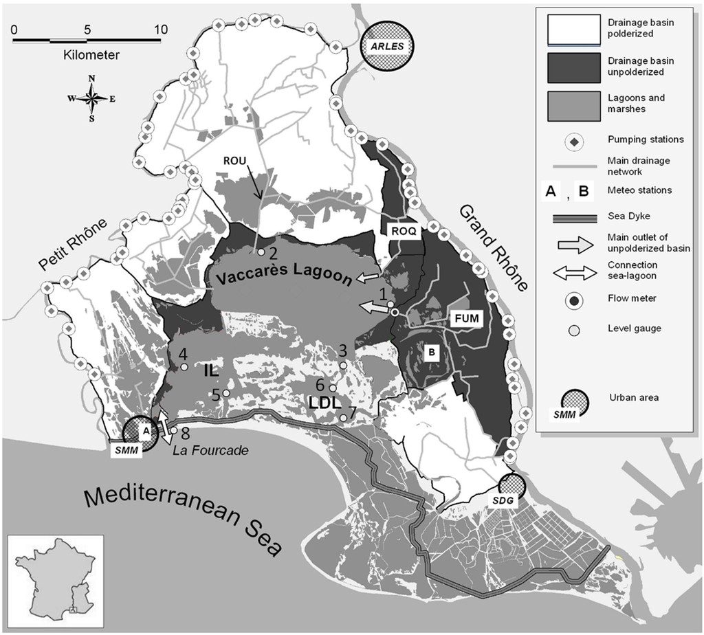 During the last decade, an ongoing experimental dataset has been collected on the Vaccarès lagoon system, especially with regard to weather, water level, and water flow data.