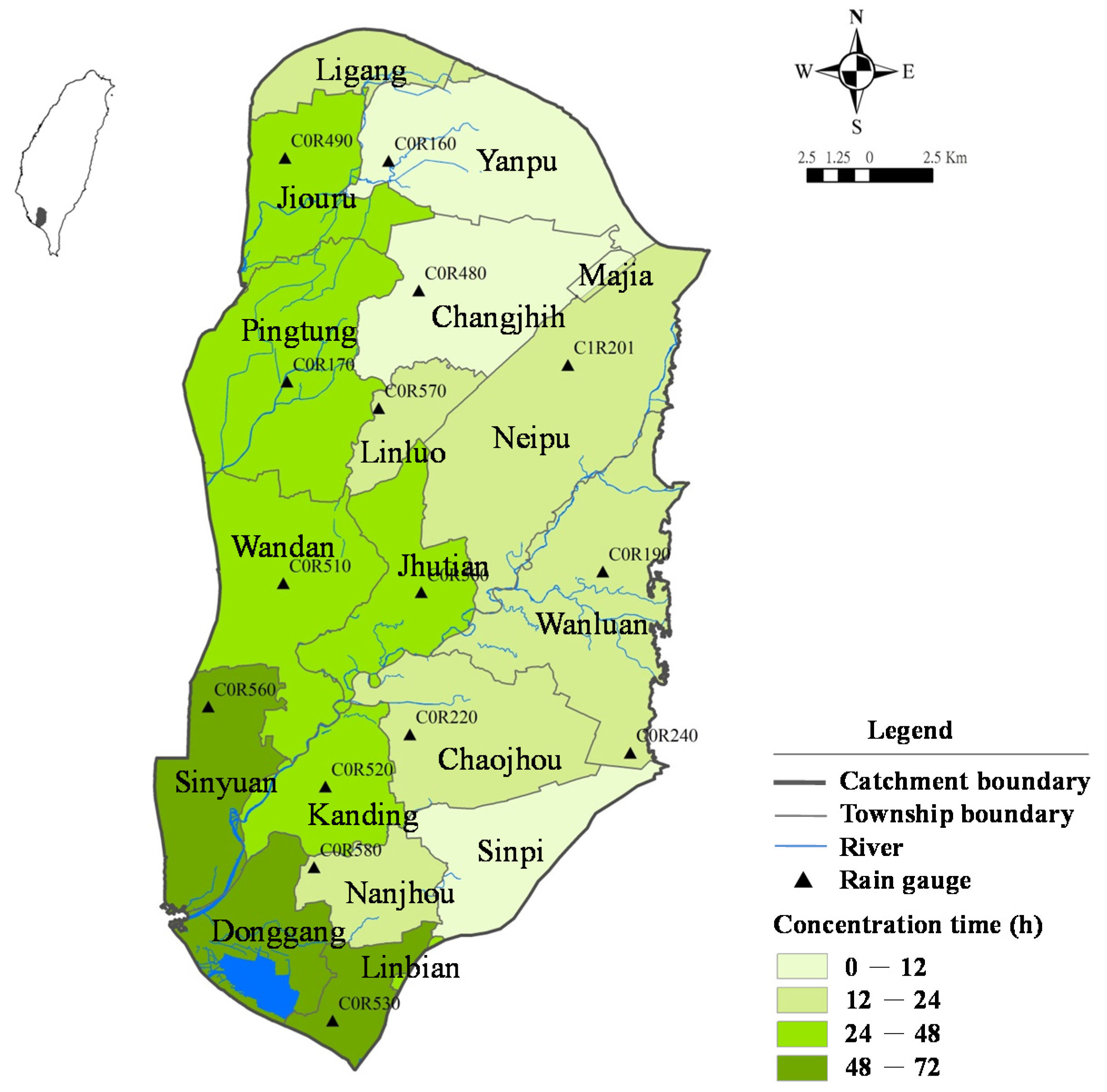 - Hsieh, L.S.; Jang, J.H.; Lui, W.C.; Tung, C.P. Runoff peak under climate change and associated flood management in Taiwan. J. Chin. Inst. Civil Hydraul. Eng. 2012, 24, 245–252. [Google Scholar]