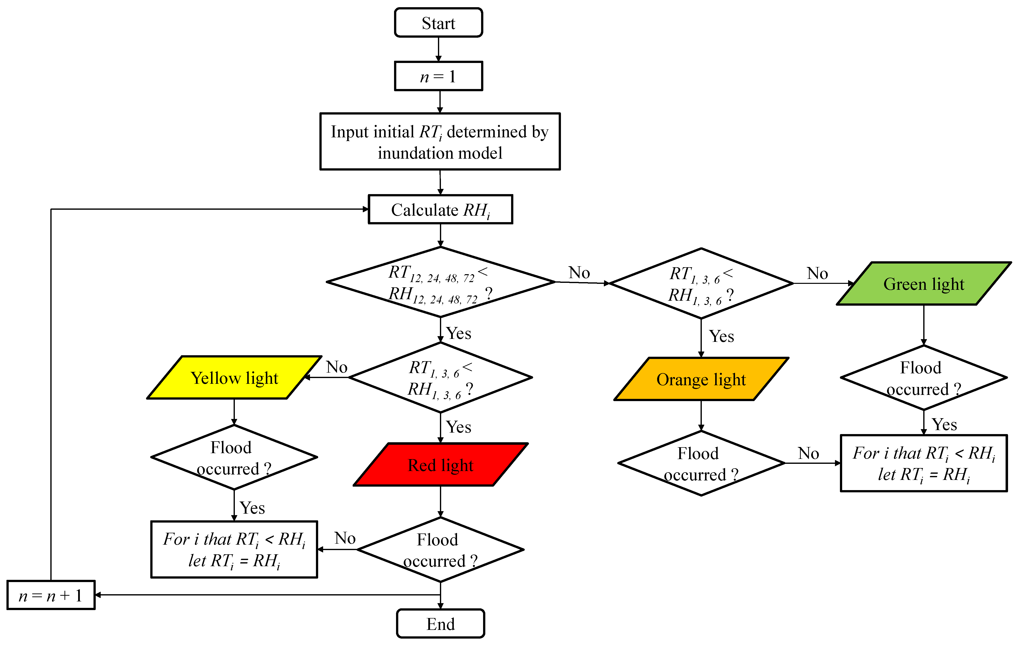 | Yellow | Mild flood warning | Flood defense |