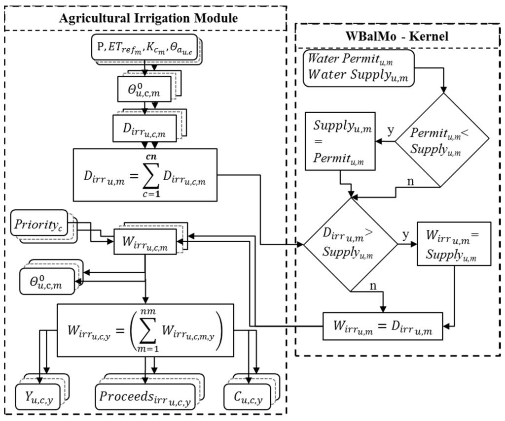 2.1.2. Implementation of an Agricultural Irrigation Module in the Model WBalMo