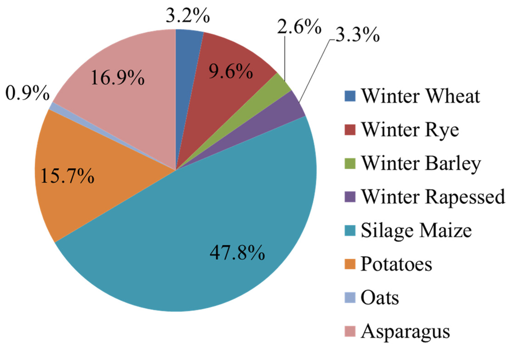 - Statistisches Bundesamt. Land- und Forstwirtschaft, Fischerei Bodenbearbeitung, Bewässerung, Landschaftselemente—Erhebung über landwirtschaftliche Produktionsmethoden (ELPM); Statistisches Bundesamt: Wiesbaden, Germany, 2011. [Google Scholar]
