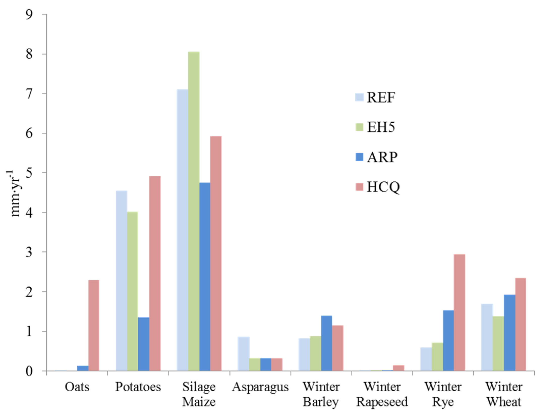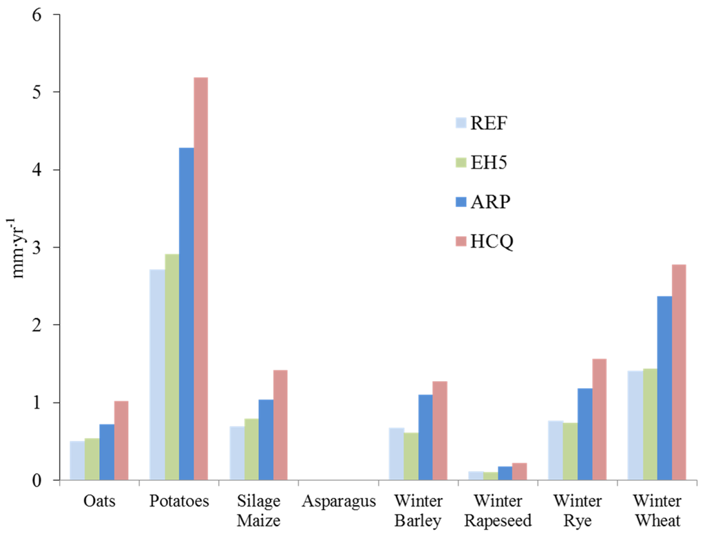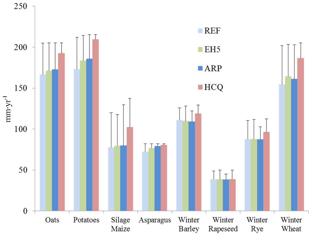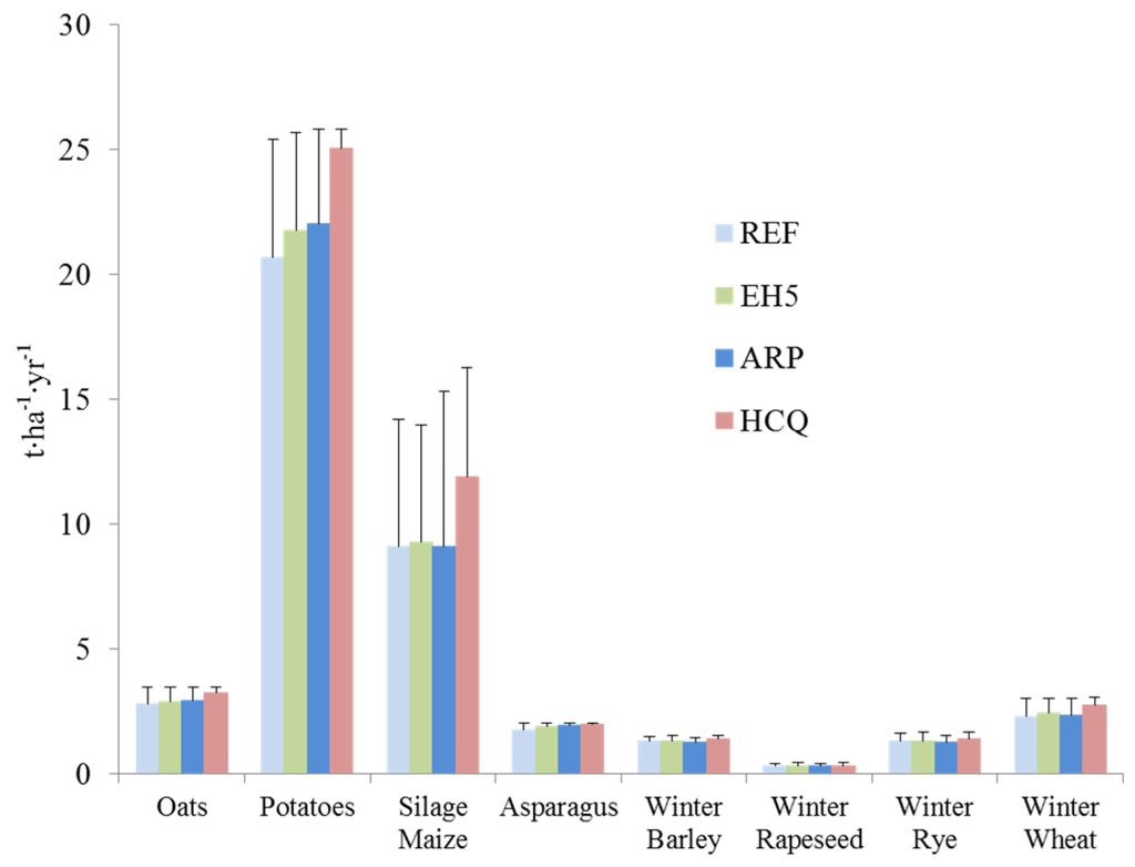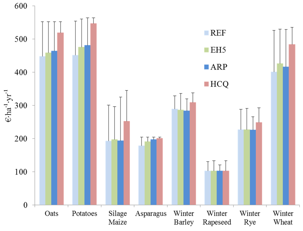 | Crop | REF (€·ha−1·year−1) | EH5 | ARP | HCQ |