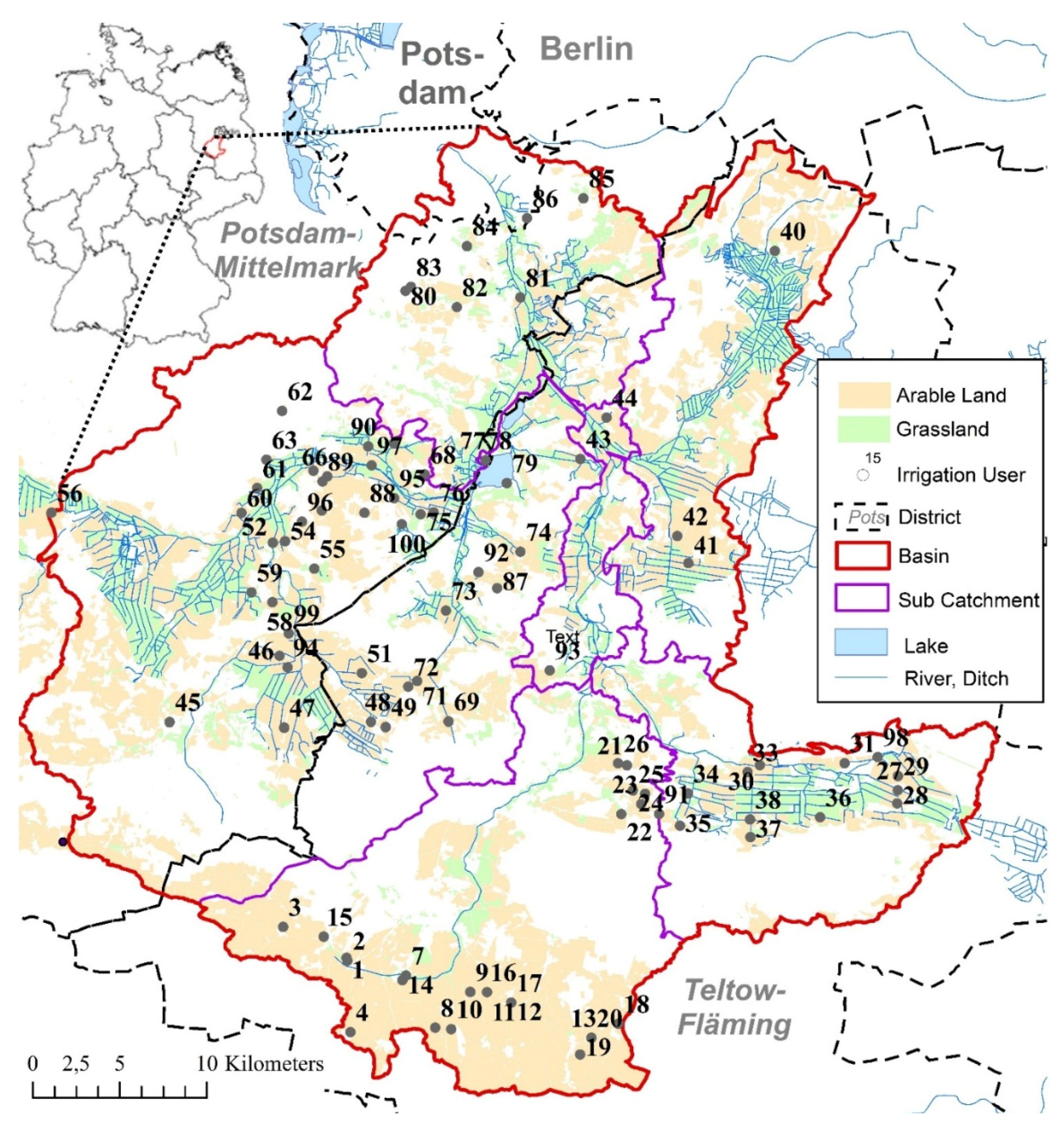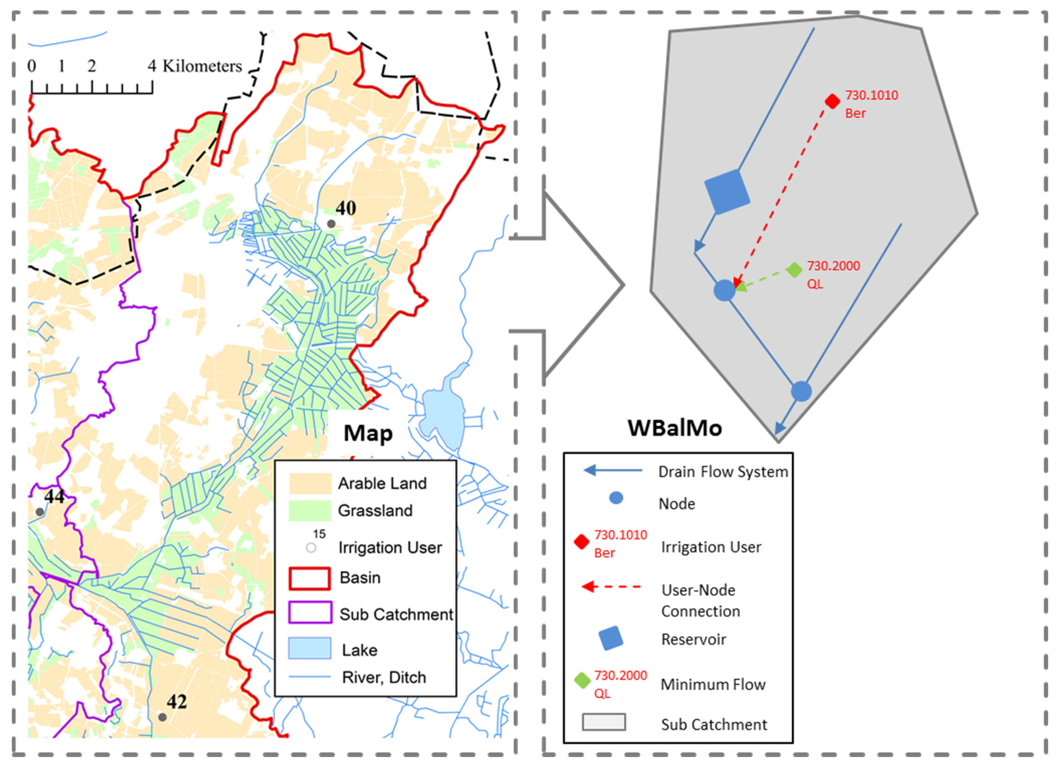 Steidl, J.; Schuler, J.; Schubert, U.; Dietrich, O.; Zander, P. Expansion of an Existing Water Management Model for the Analysis of Opportunities and Impacts of Agricultural Irrigation under Climate Change Conditions. Water 2015, 7, 6351-6377. https://doi.org/10.3390/w7116351