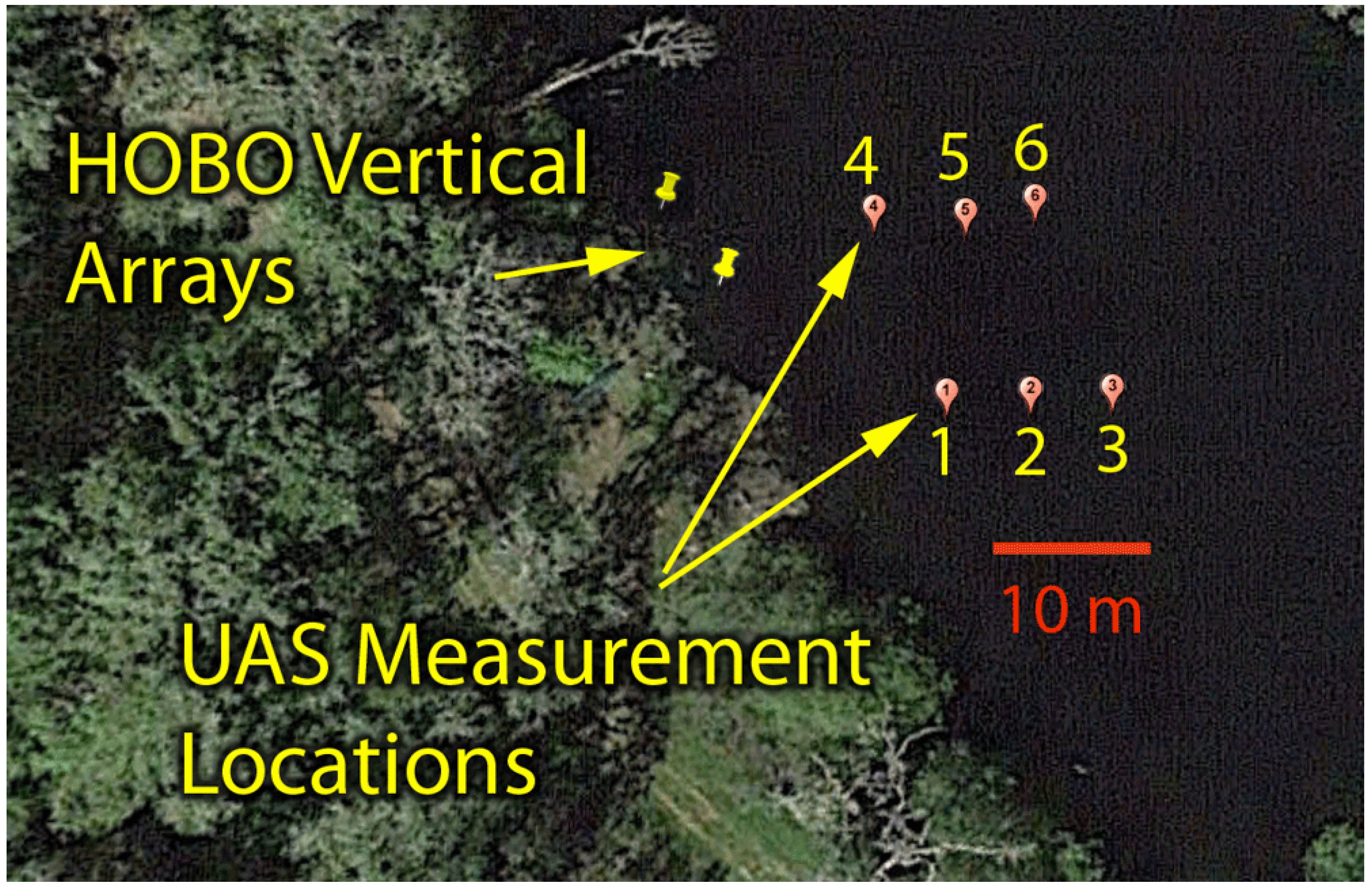 3.1. Comparison of UAS and In Situ Temperature Measurements