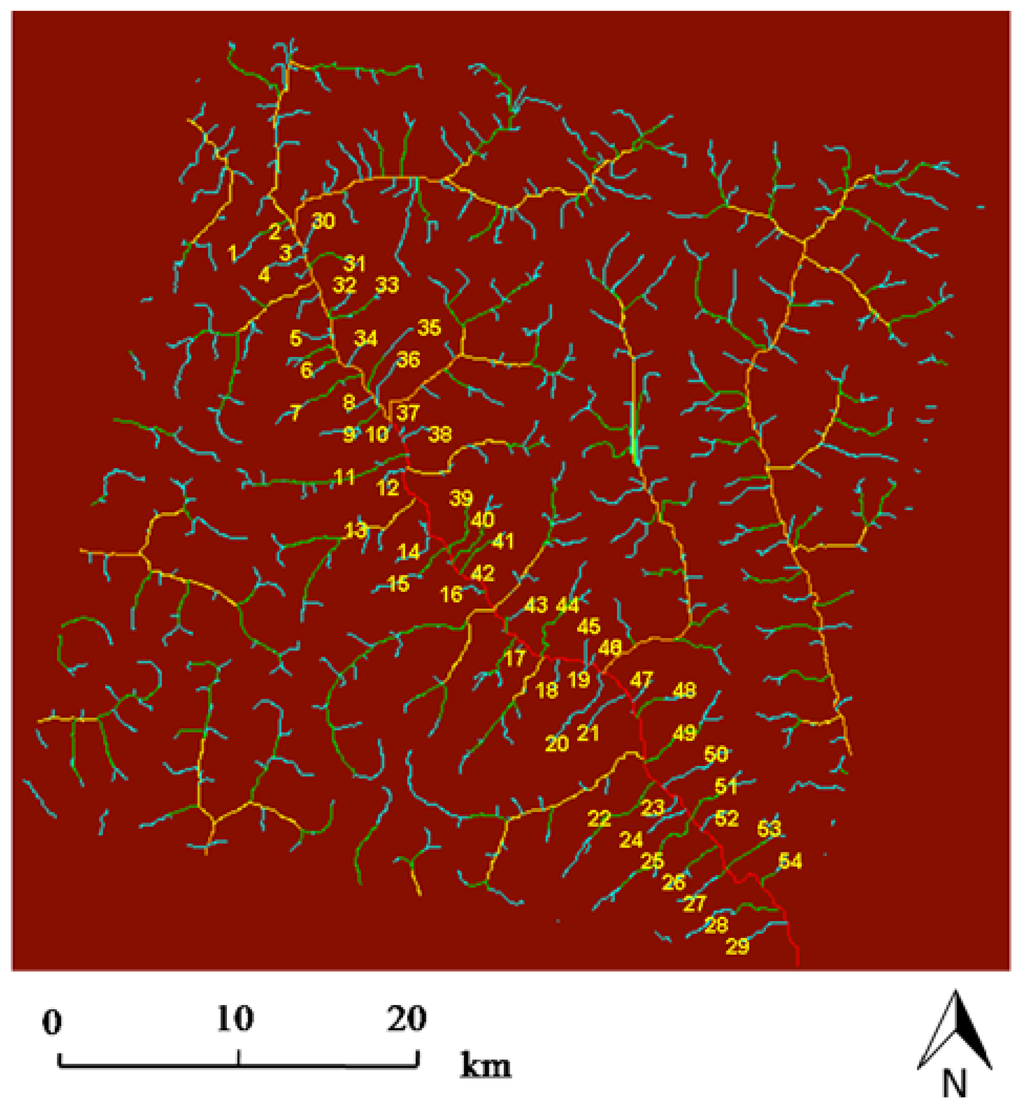 Note: * The streams 13, 29, 30, 32, 46 and 52 contain depressions and are marked as N/A.