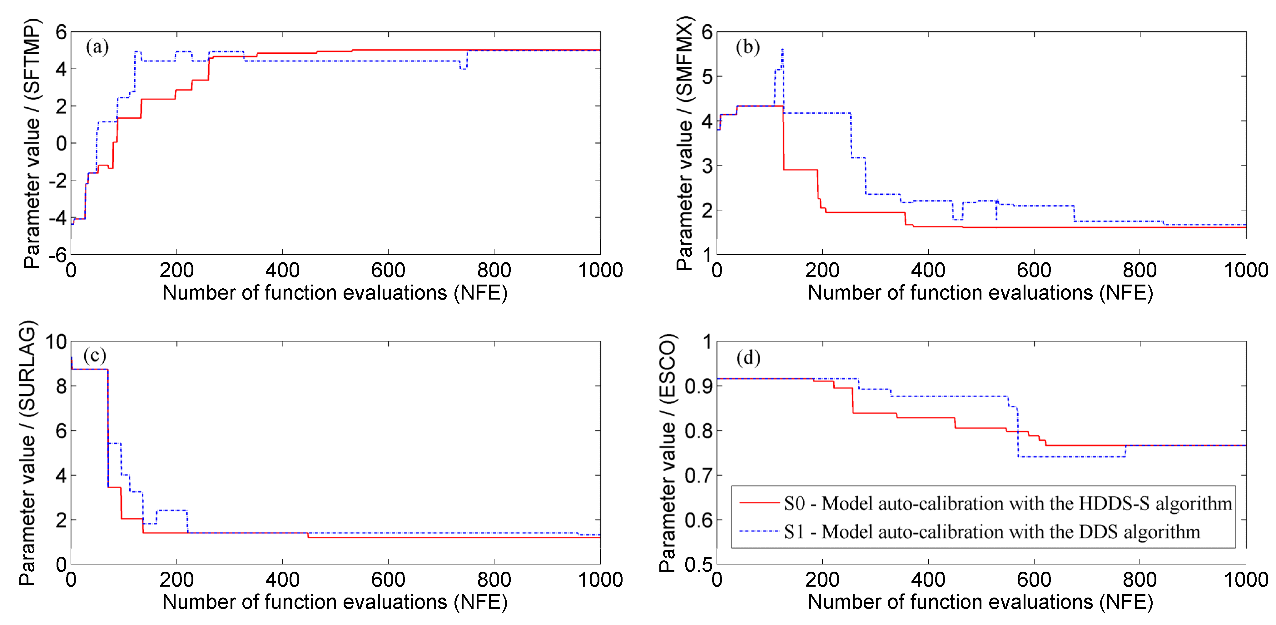- Behrangi, A.; Khakbaz, B.; Vrugt, J.A.; Duan, Q.; Sorooshian, S. Comment on “Dynamically dimensioned search algorithm for computationally efficient watershed model calibration” by Bryan A. Tolson and Christine A. Shoemaker. Water Resour. Res. 2008, 44. [Google Scholar] [CrossRef]