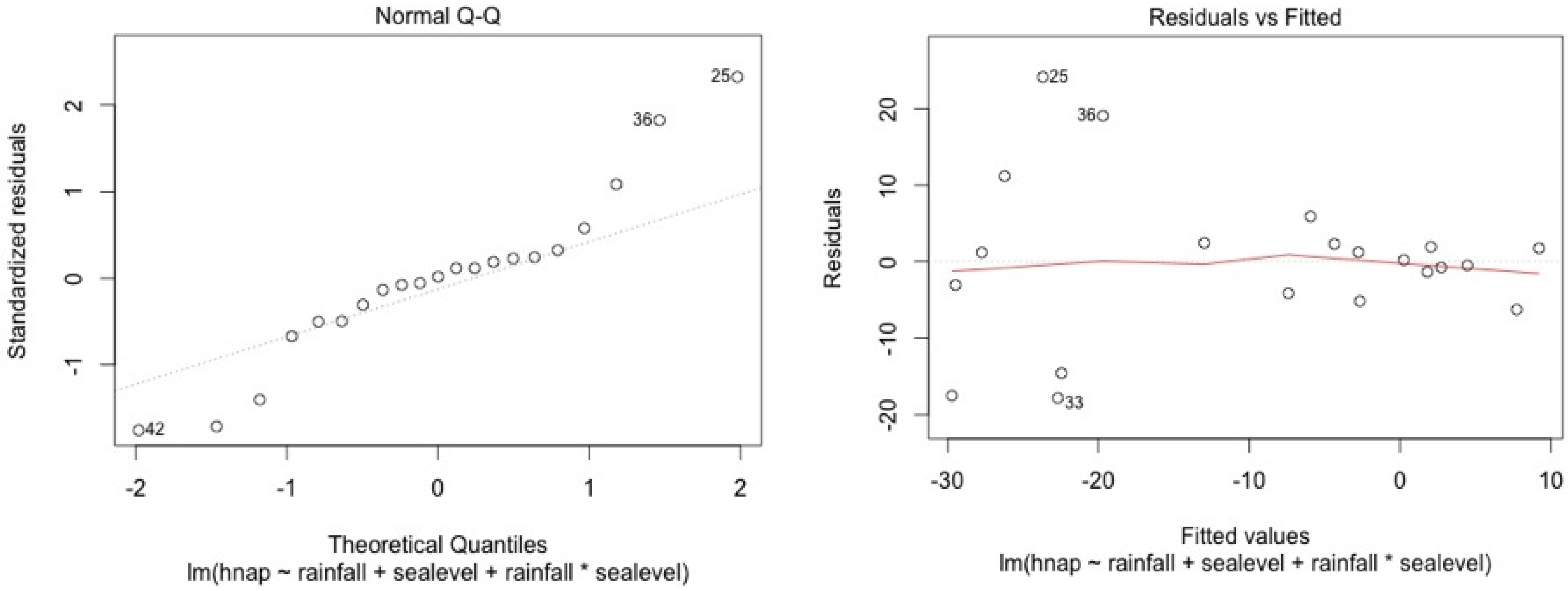 Water-table level i,j = seawater level j + rainfall amounts j + seawater level × rainfall amounts j + residuals i,j