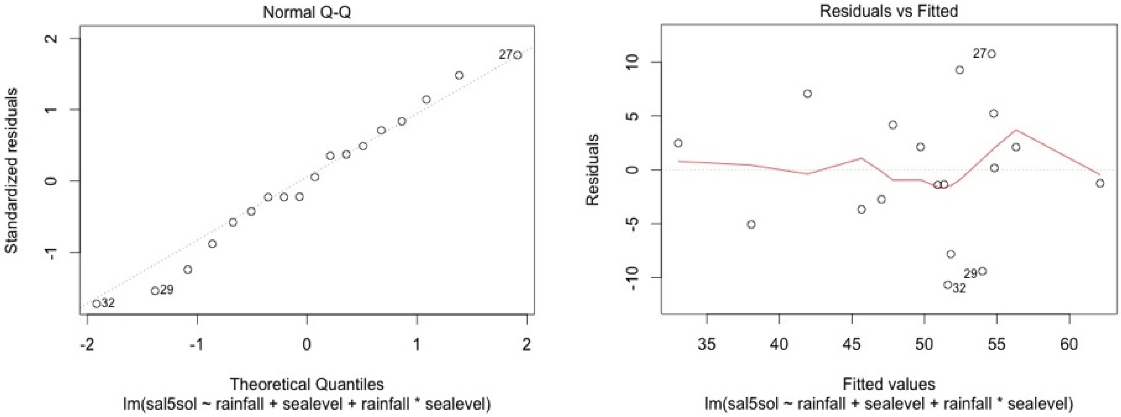 Top-soil salinity i,j = seawater level j + rainfall amounts j + seawater level × rainfall amounts j + residuals i,j