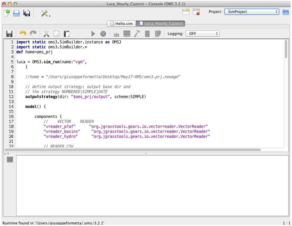 OMS simulations can be executed either from the OMS graphical interface (OMS Console) or they can be linked together and invoked within the uDig (User-friendly Desktop Internet GIS) console or other integrated development environments. The OMS Console and uDig user interfaces are shown in Figure 1 and Figure 2, respectively.