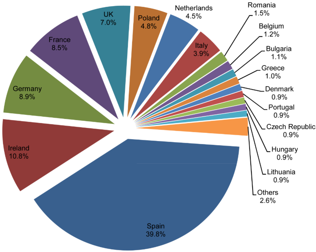 | Guadalquivir | 2.9% | 8.31 | oil crops-24%, fruits-21%, vegetables-15%, pulses-11%, other cereals-9% |