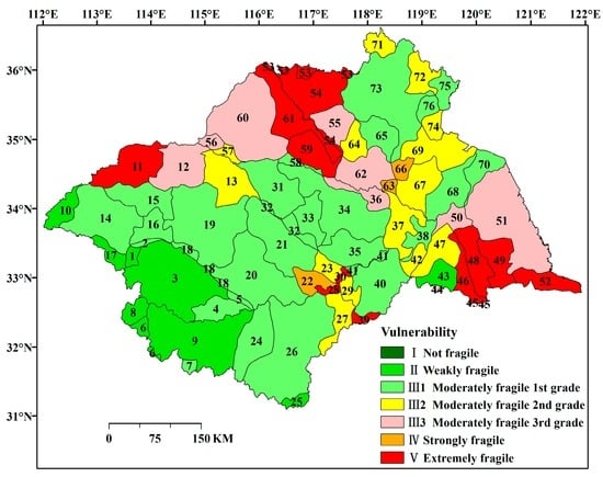 | 0.40 < V(t) ≤ 0.60 | – | III3 | Moderately fragile, 3rd grade |