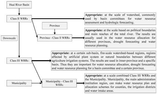 - Class II WRRs: These comprise a naturally defined system under the scale of Class I WRRs, and commonly present the upper, middle, lower, and the main branch of the total basin. Class II WRRs are either large river basins or contiguous smaller basins with common characteristics.