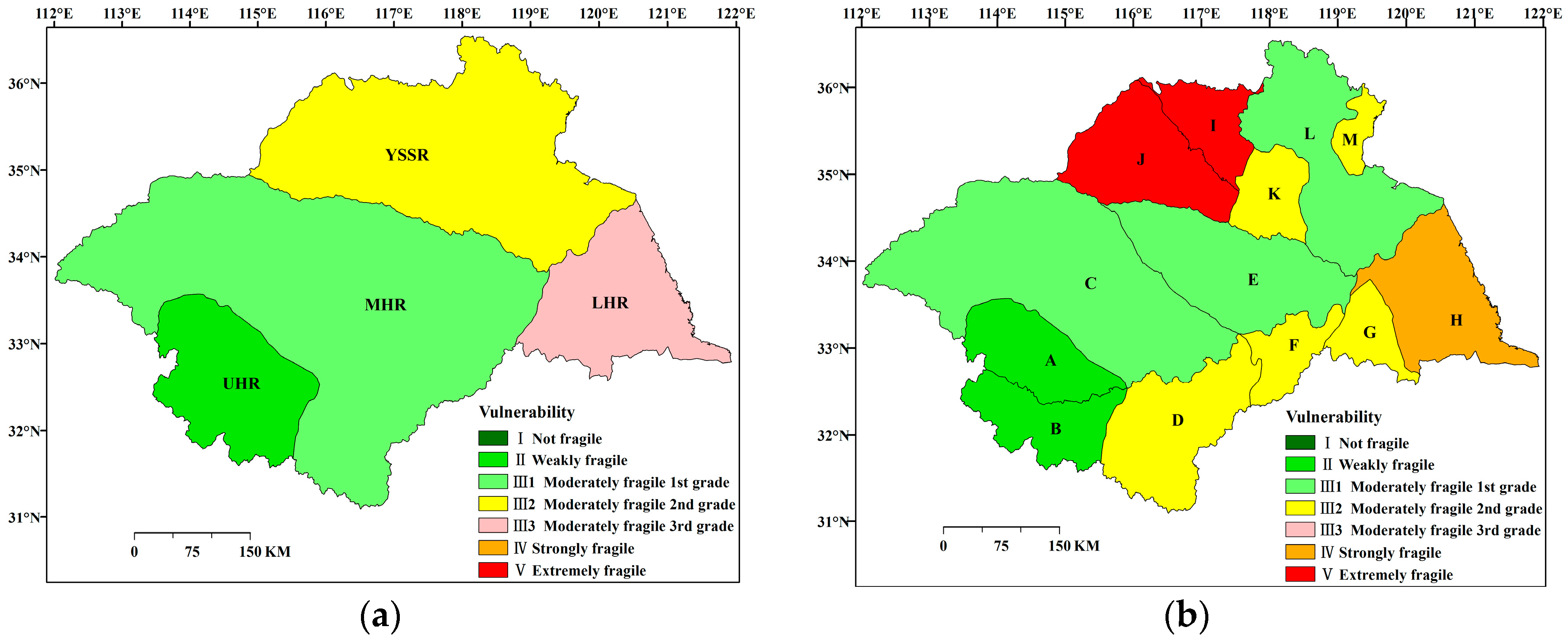 2.3.2. Heterogeneity Assessment of Water Resource Vulnerability