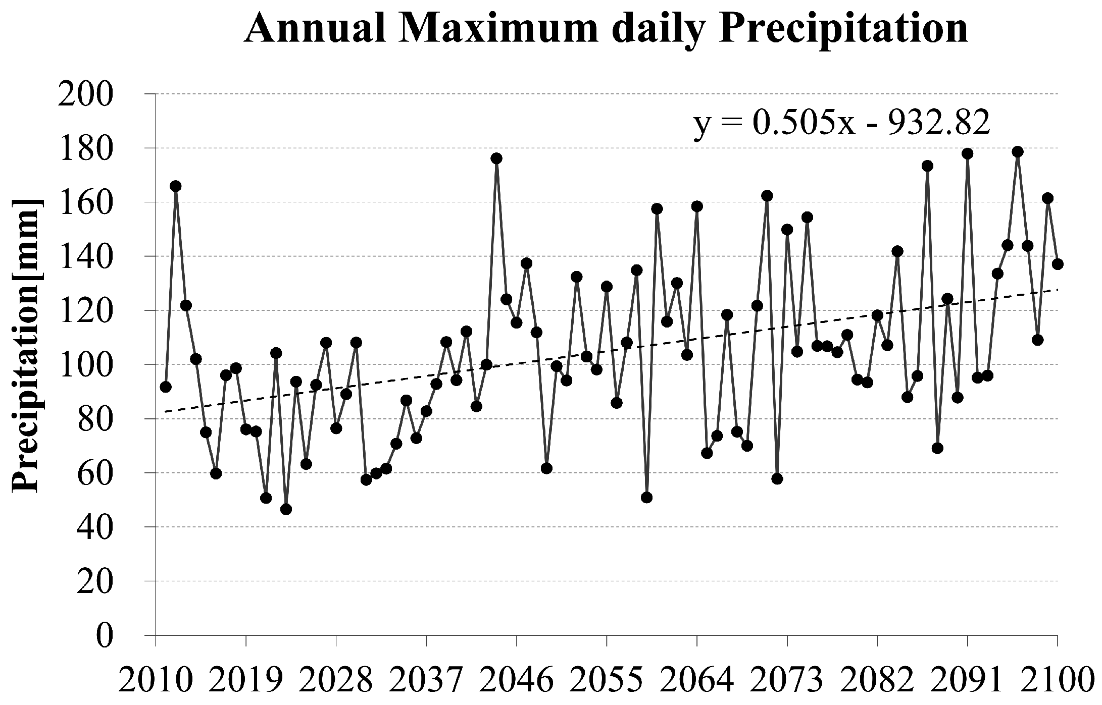 The major consequences of climate change in the Korean peninsula will be upward trends in mean atmospheric temperature and precipitation. The increase in the regional precipitation has been observed in the form of not only total precipitation, but also heavy precipitation events. Kang [